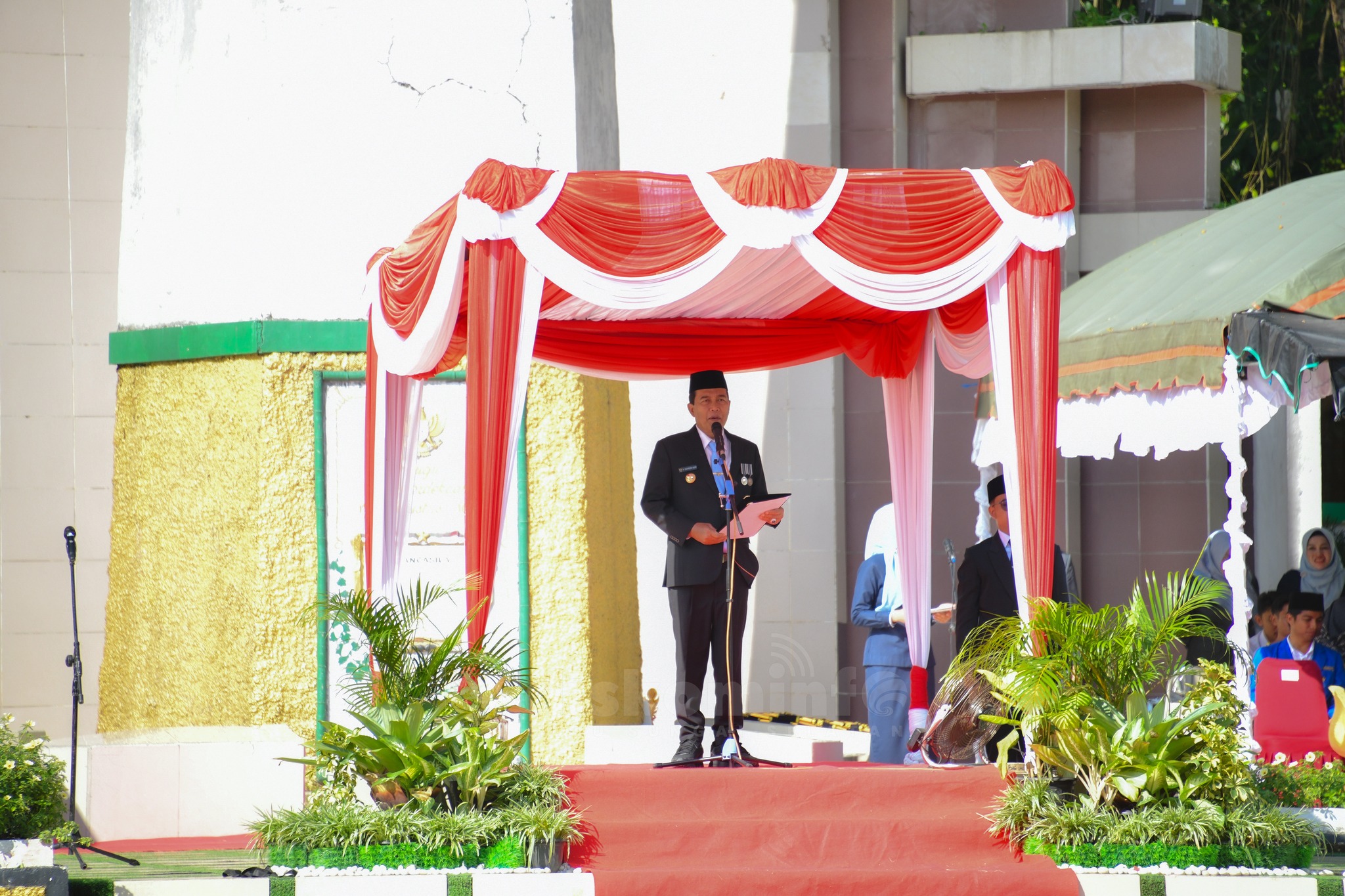 Upacara berlangsung dengan khidmat dan penuh semangat nasionalisme, dihadiri oleh Wakil Bupati HSS H. Suriani, S.Sos., M. AP., Wakil Ketua TP PKK Kabupaten HSS, Hj. Misnawati Suriani, Forkopimda Kabupaten HSS, para Asisten dan Staf Ahli, Kepala Organisasi Perangkat Daerah (OPD), para Ketua Organisasi Kepemudaan, serta seluruh peserta upacara dari berbagai unsur masyarakat, pelajar, dan komunitas pemuda.