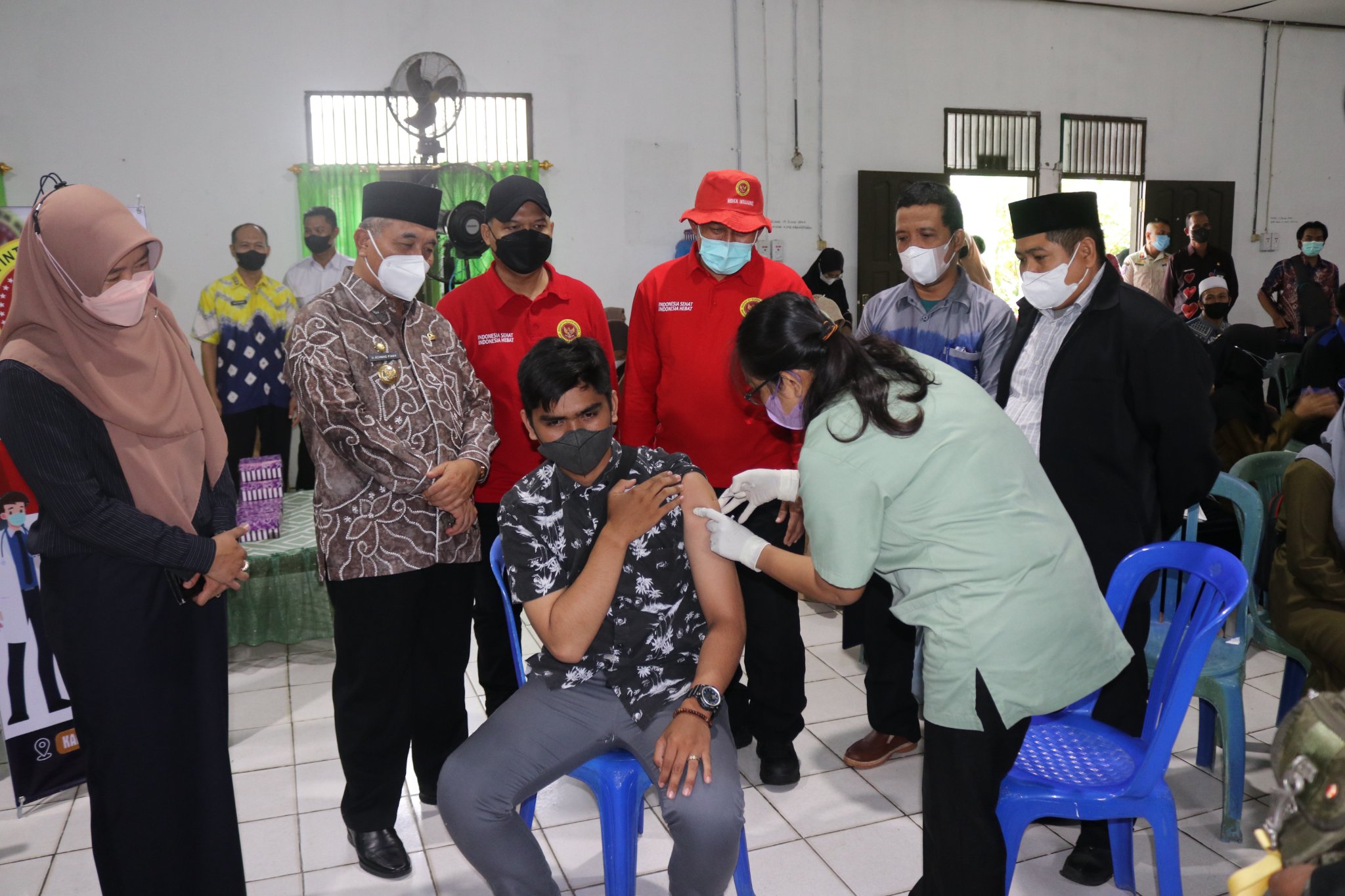 Pelaksanaan vaksinasi tersebut juga dipantau langsung oleh Bupati HSS Drs. H. Achmad Fikry, M.AP dan Kabag Ops Binda Kalimantan Selatan Kolonel Laut (KH) Achmad Syaifudin, SH didampingi oleh Sekretaris Daerah Kab.HSS Drs H Muhammad Noor MAP, Kepala Dinas Kesehatan, Kepala BIN Kab. HSS beserta jajaran.
