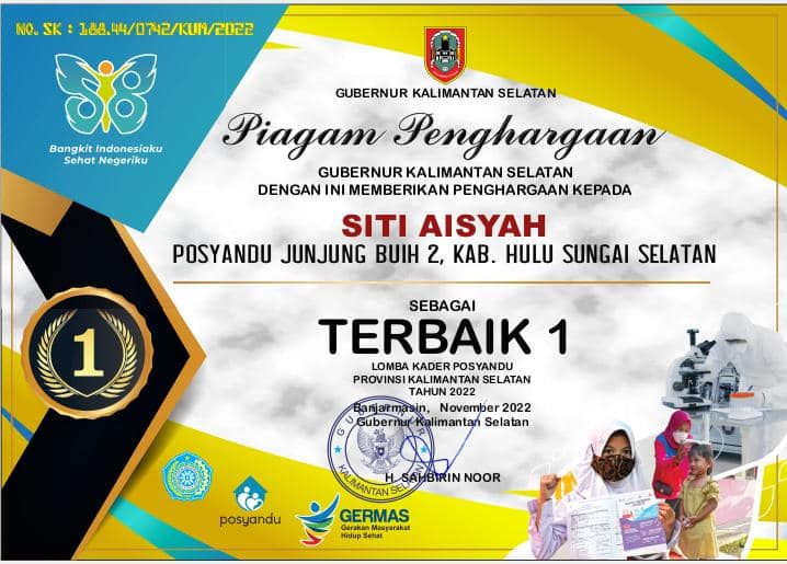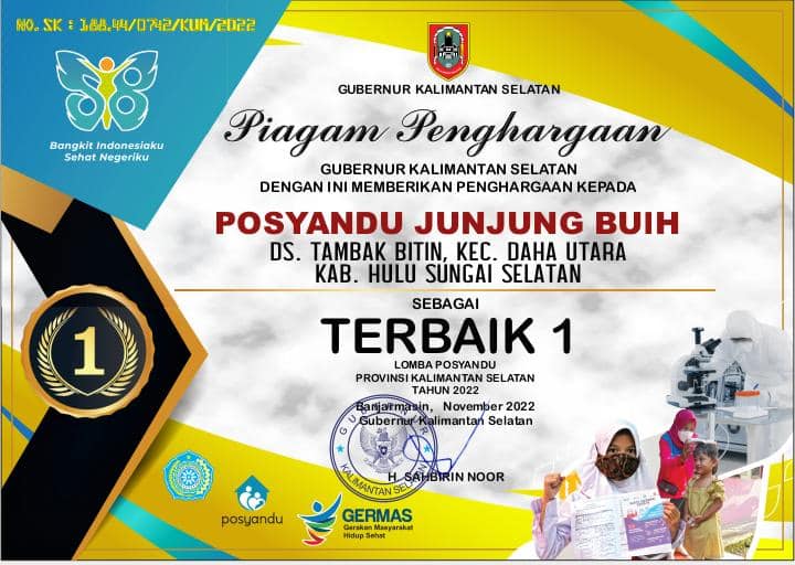 Adapun Piagam Penghargaan tersebut diberikan kepada Desa Gambah Luar sebagai terbaik 1 Lomba Desa / Kelurahan Ber-PHBS, Posyandu Junjung Buih Desa Tambak Bitin sebagai terbaik 1 Lomba Posyandu, dan Siti Aisyah dari Posyandu Junjung Buih 2 sebagai terbaik 1 Lomba Kader Posyandu.