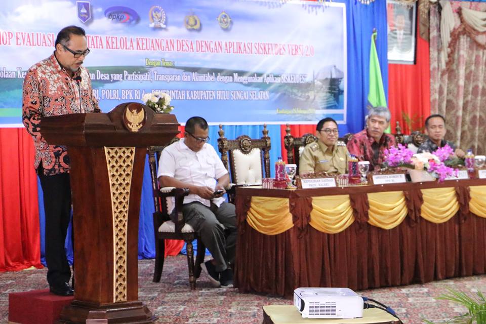 Seperti yang disampaikan oleh Bupati Drs.H.Achmad Fikry, M.AP dalam sambutannya sekaligus membuka secara resmi Workshop yang dilaksanakan diruang Pendopo Hulu Sungai Selatan pada 26 Pebruari 2019, disampaikan bahwa selama ini pihaknya sangat bersyukur, karena BPKP selama ini terus mengawal pengelolaan dana Desa dengan berbagai Aplikasinya, disampaikan pula, bahwa Pemerintah Daerah selama ini terus mengawal para Camat untuk agar para Kepala Desa dan Perangkat desa betul betul mengelola dana Desa dengan sebaik baiknya, karena kita ingin menunjukkan ke Pemerintah Pusat, bahwa kita siap selalu mengelola dengan baik, salah satu indikatornya adalah jangan sampai terjadi persoalan persoalan Kepala Desa dan Aparat yang bersentuhan dengan hukum, selain sangat mendukung dengan Workshop yang dilaksanakan , dalam hal ini H.Achmad Fikry juga berharap agar terus dilakukan pendampingan oleh BPKP agar pengelolaan dana Desa kedepan bisa lebih baik sesuai dengan ketentuan perundang undangan yang berlaku.