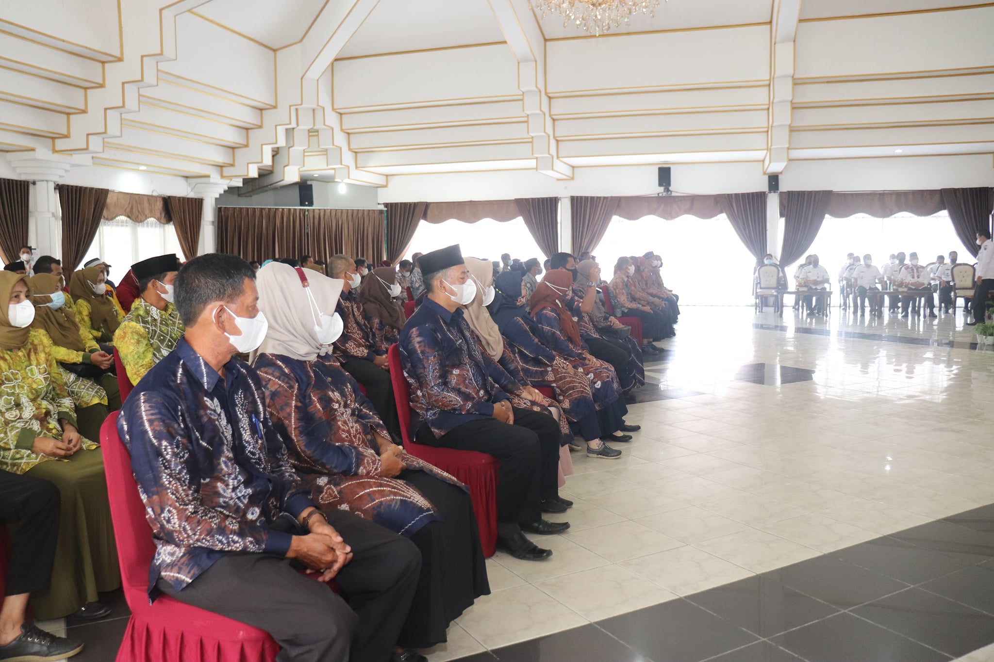 Dengan tetap menerapkan protokol kesehatan, acara pelepasan masa jabatan dilaksanakan di Pendopo Bupati HSS, pada (30/03/22), yang dihadiri para Asisten, Camat Se-Kab HSS, serta para Ketua TP. PKK Kecamatan.