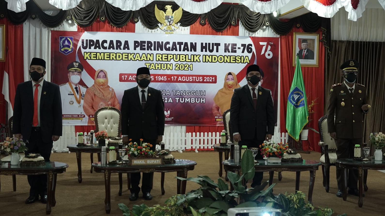 Bertempat di Pendopo Bupati Hulu Sungai Selatan, Wakil Bupati HSS Syamsuri Arsyad, S.AP, MA ikuti upacara penurunan Bendera Negara Sang Merah Putih secara virtual dari Istana Negara. Selasa (17/8/2021). Upacara yang dilaksanakan secara virtual tersebut juga diikuti Ketua Dewan Perwakilan Rakyat Daerah Kab. HSS Akhmad Fahmi, SE, Ketua Pengadilan Negeri Yunto Safarillo Hamonangan Tampubolon, SH, MH dan Kepala Kejaksaan Negeri Agus Rujito, SH, MH.