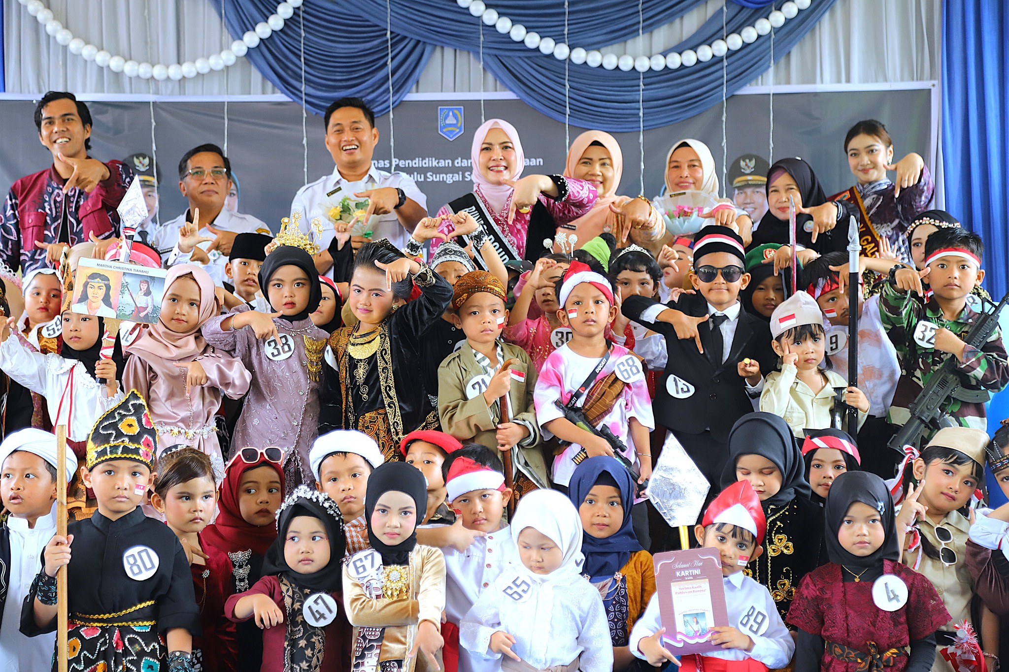 Sementara itu, Bunda PAUD Kabupaten HSS, Hj. Tata Syafruddin Noor, menyampaikan harapannya agar kegiatan ini tidak hanya menjadi ajang hiburan, tetapi juga sarana untuk membangun rasa percaya diri, kreativitas, serta kecintaan anak-anak terhadap budaya dan nilai-nilai luhur bangsa.