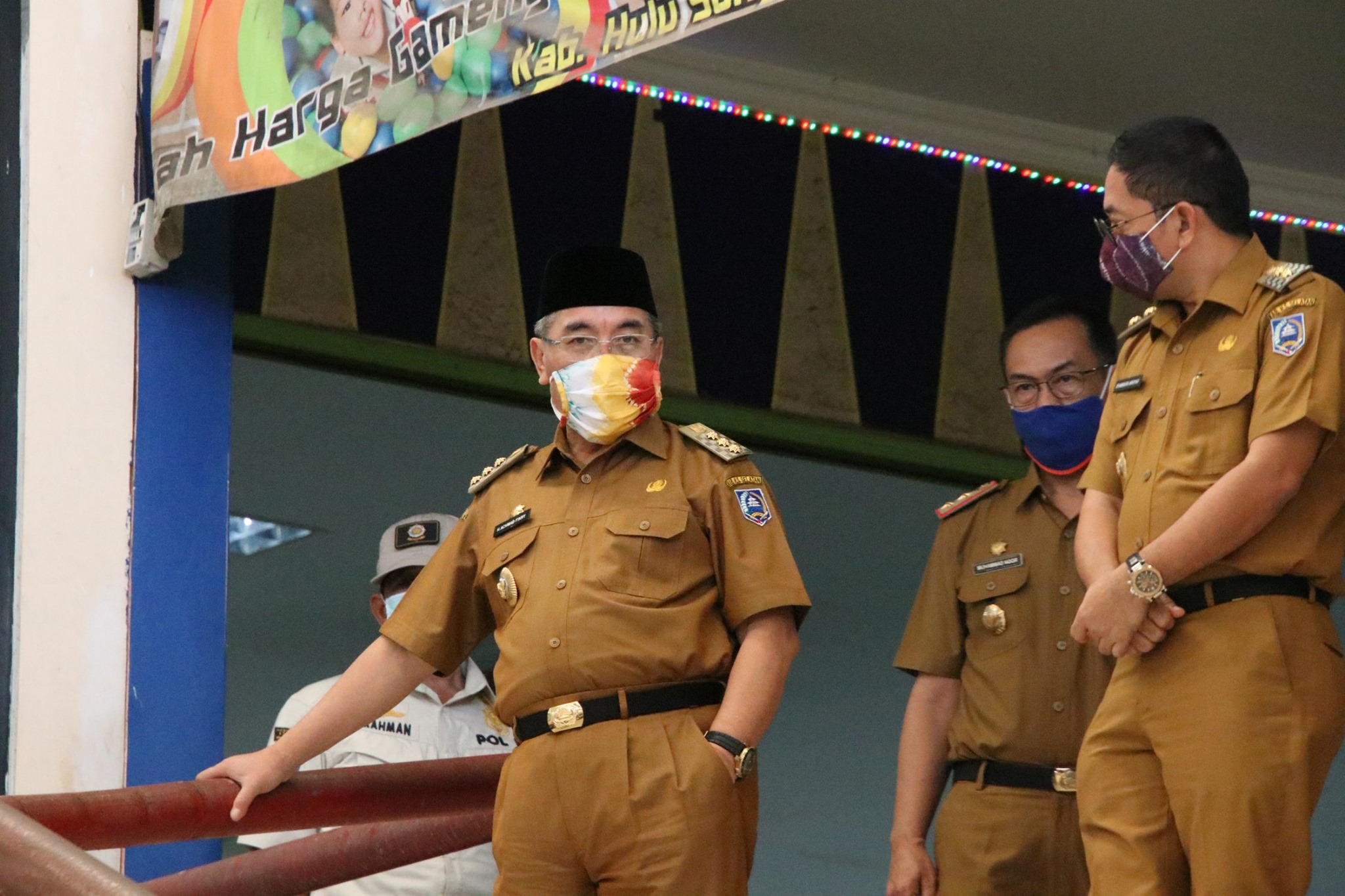 Bupati Hulu Sungai Selatan H. Achmad Fikry,MAP melakukan peninjauan langsung ke lokasi rencana pelayanan publik di lantai 3 pasar Los Batu didampingi oleh Wakil Bupati Hulu Sungai Selatan Syamsuri Arsyad, S.AP M.A, dan Sekretaris Daerah Kabupaten Hulu Sungai Selatan Drs. H. Muhammad Noor, M.AP beserta kepala SKPD terkait. Senin (04/05).