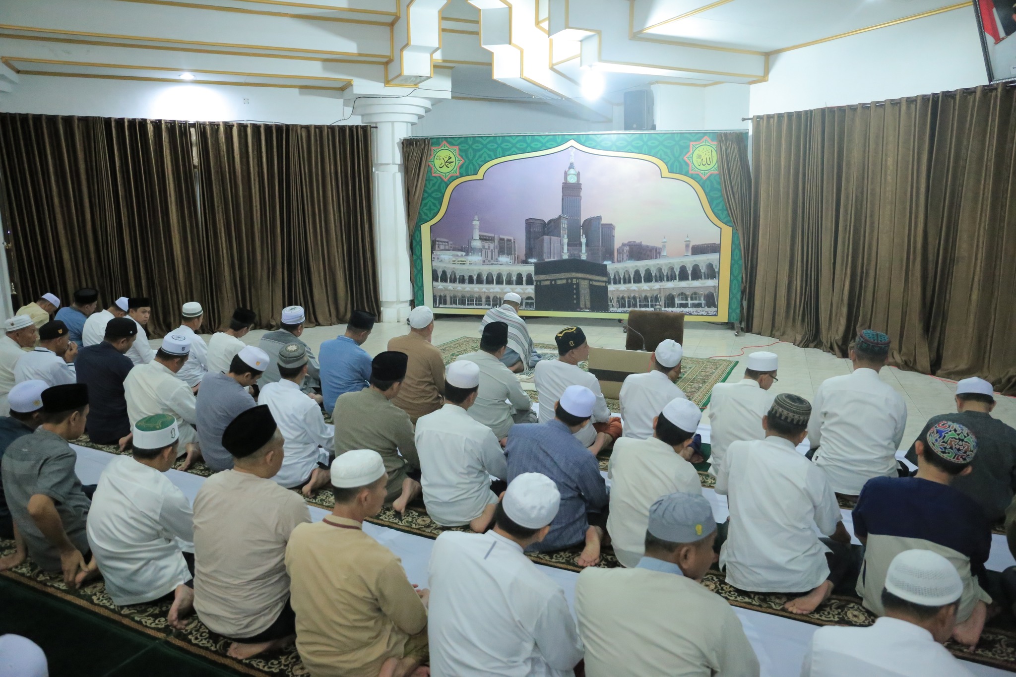Tampak jemaah yang mengisi shaf di bagian laki-laki, Bupati Drs. H. Achmad Fikry, M. AP, Sekretaris Daerah (Sekda) Drs. H. Muhammad Noor, M. AP, Para Asisten 1, 2, dan 3 Setda Kab. HSS, para Kepala OPD dan Sekretaris OPD lingkup Pemkab HSS, Sekreteris DPRD, para Kepala Bagian dilingkungan Setda Kab. HSS dan Camat seKabupaten.