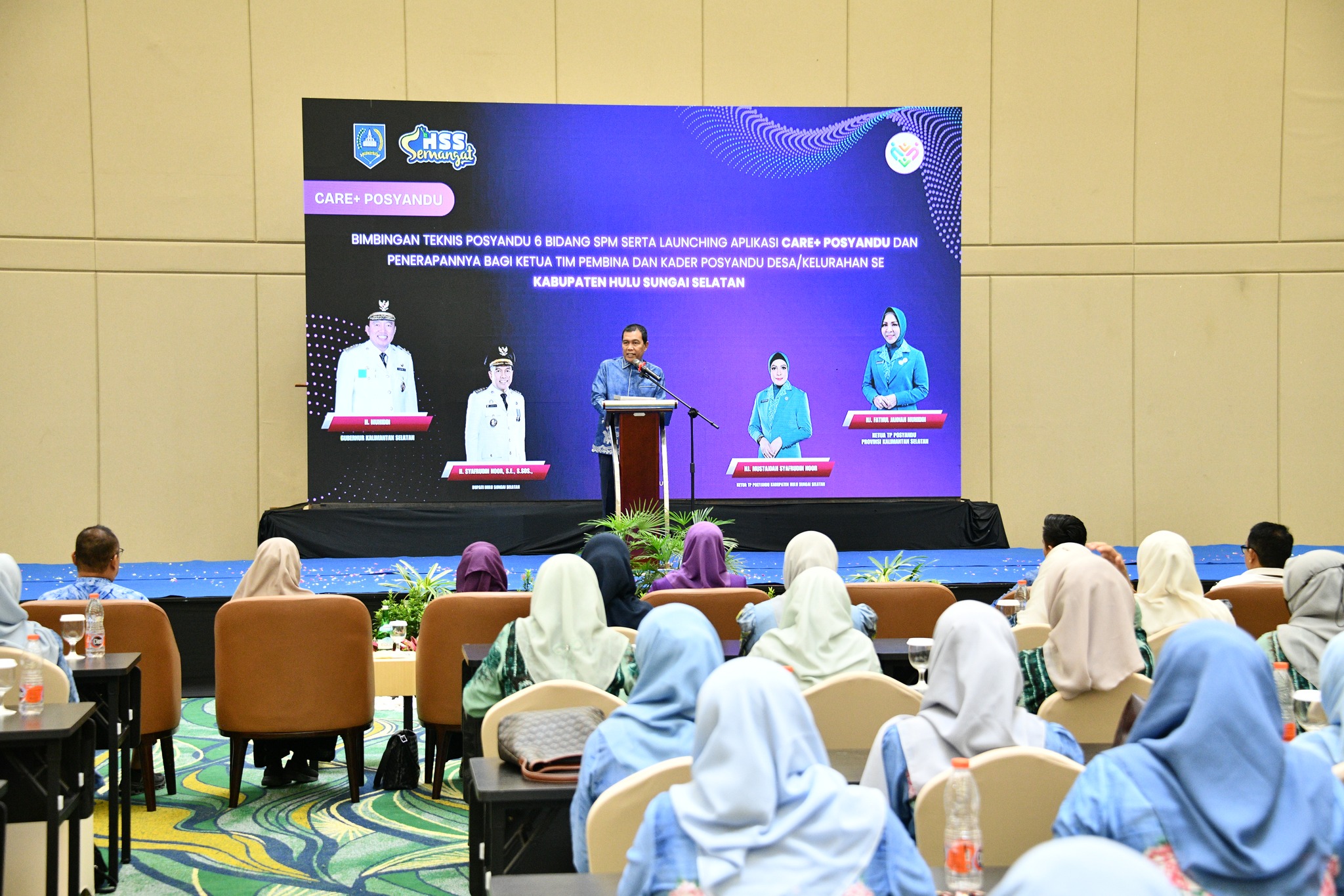 Hal ini ditandai dengan dibukanya secara resmi kegiatan Bimbingan Teknis (Bimtek) Kader Posyandu 6 Bidang Standar Pelayanan Minimal (SPM) serta peluncuran Aplikasi Care+ Posyandu Tahun 2026 oleh Bupati HSS, H. Syafrudin Noor, SE., S.Sos, bertempat di Ballroom Cendana Hotel Grand Maya by ARTOTEL, Banjarbaru, Rabu (15/04).