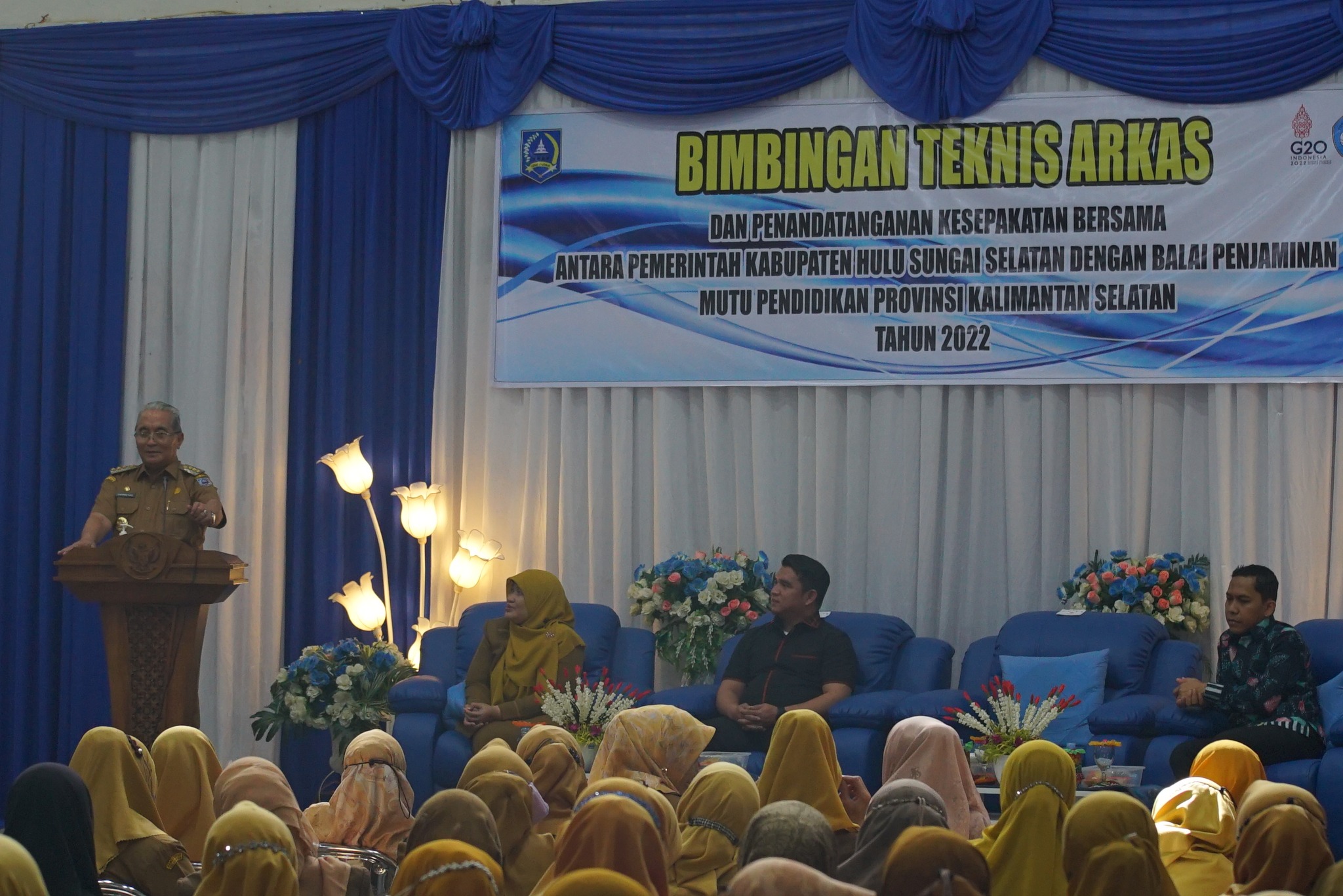 Bupati Hulu Sungai Selatan (HSS) Drs. H. Achmad Fikry, M.AP membuka secara resmi kegiatan Bimbingan Teknis Aplikasi Rencana Kegiatan Sekolah (Arkas) tahun 2022 sekaligus lakukan penandatanganan MoU Pemkab. HSS dengan Balai Penjamin Mutu Pendidikan Provinsi Kalimantan Selatan (Kalsel) yang diiringi dengan penyerahan bantuan untuk Komite Permainan Olahrga Tradisional Indonesia (KPOTI) yang diterima oleh Ketua DPRD Kab. HSS selaku Ketua KPOTI Kab. HSS di Gedung Pramuka HSS, Senin (21/11/2022).
