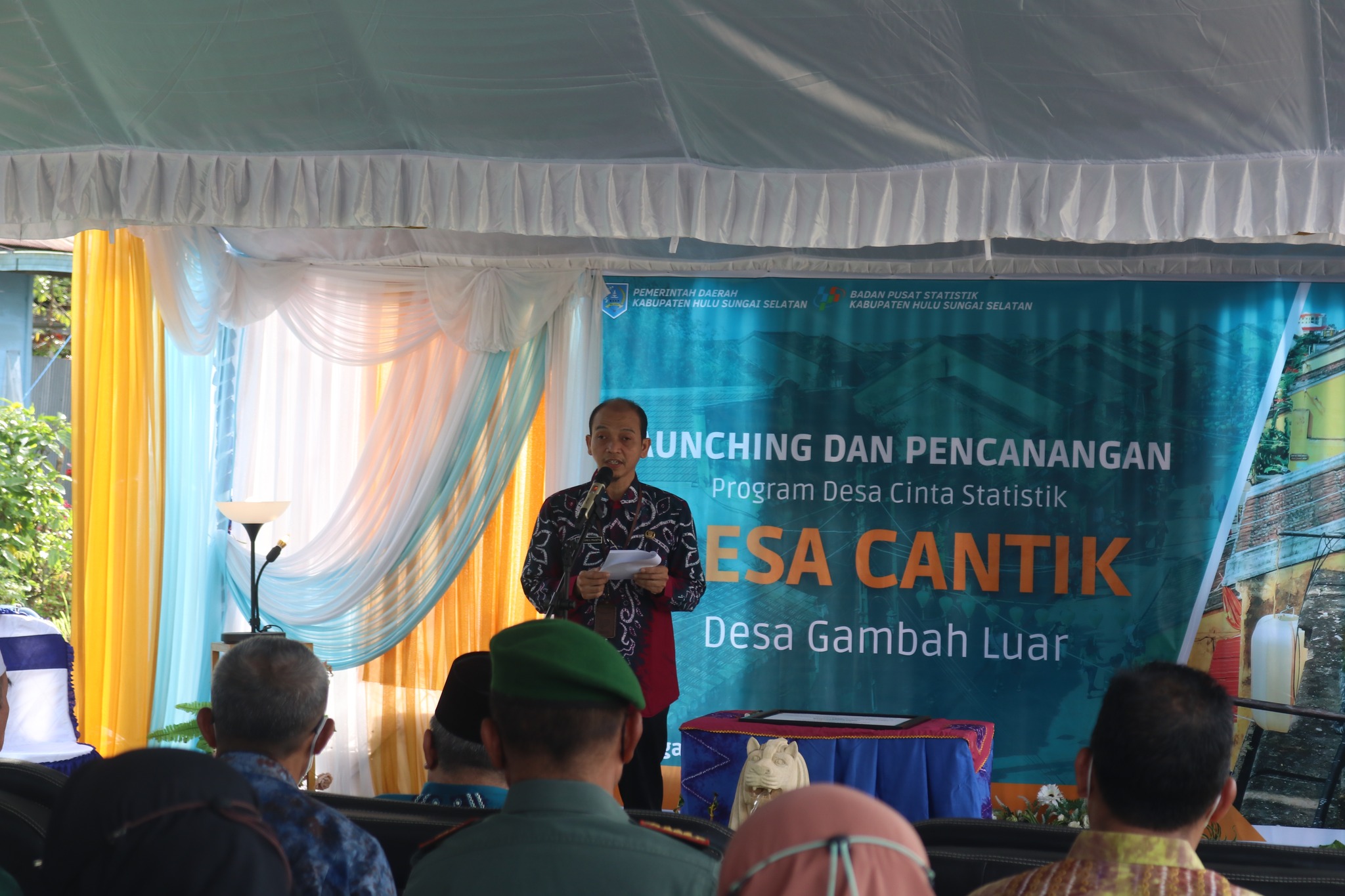 Dalam sambutan Kepala BPS Kab. HSS Agung Setiawan Prasetya menerangkan desa statistic level desa digunakan sebagai dasar dan acuan pembangunan yang lebih akurat, desa statistic atau desa cantik merupakan puing-puing BPS dalam pembinaan statistic sektoral di level desa yang didukung oleh pemerintah daerah, mengingat desa merupakan institusi publik yang paling dekat dengan masyarakat dan sekaligus menjadi ujung tombak pembangunan.