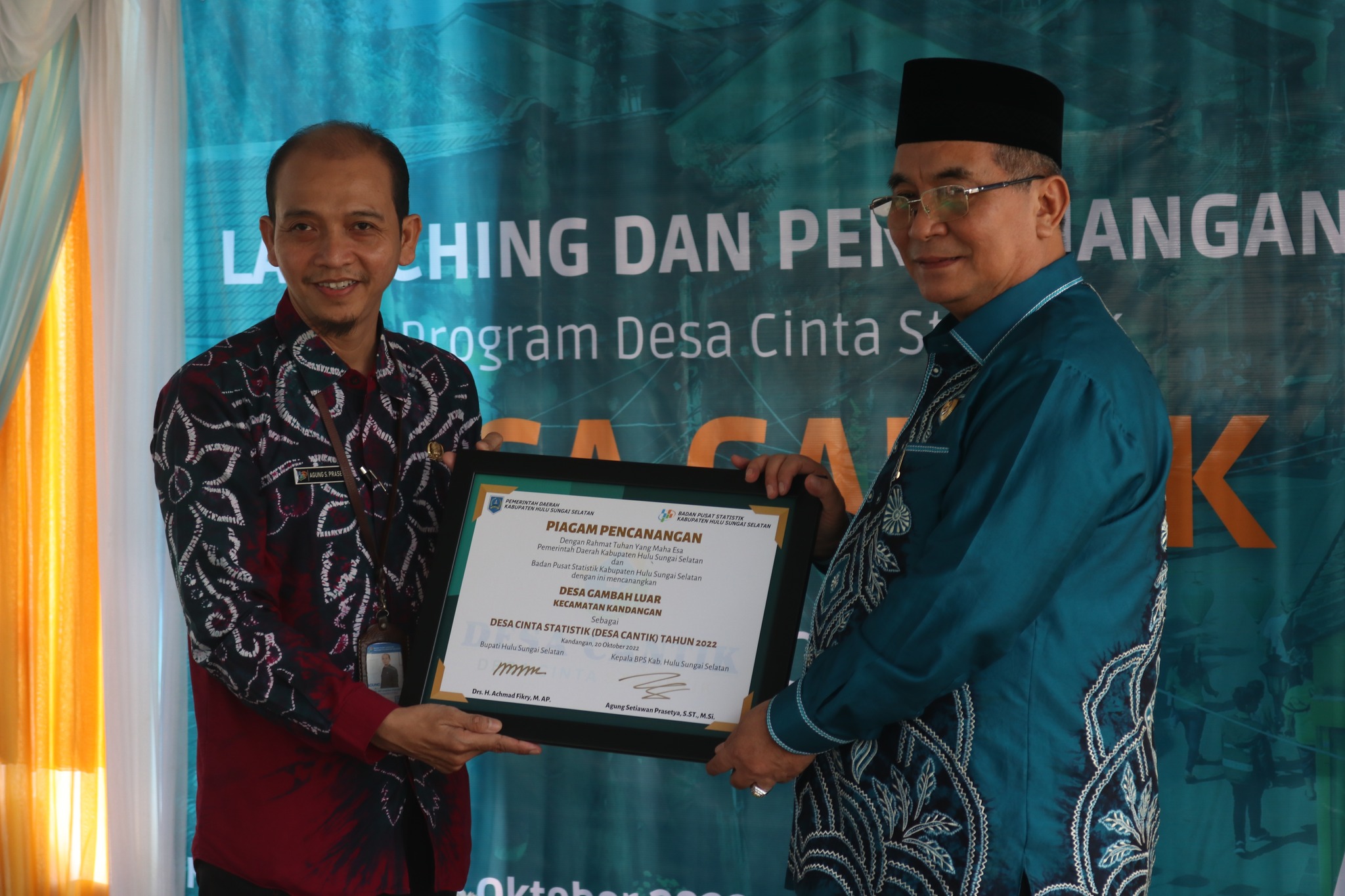Sementara Bupati HSS dalam sambutnya menyampaikan apresiasinya atas pembentukan Desa Cantik sebagai upaya percepatan dan penguatan statistik sektoral secara nasional sebagai salah satu implementasi program satu data Indonesia.