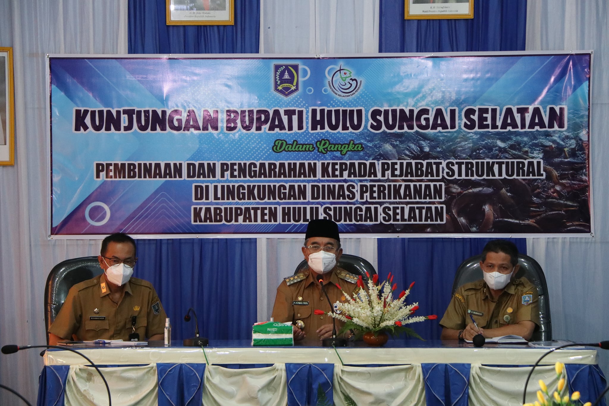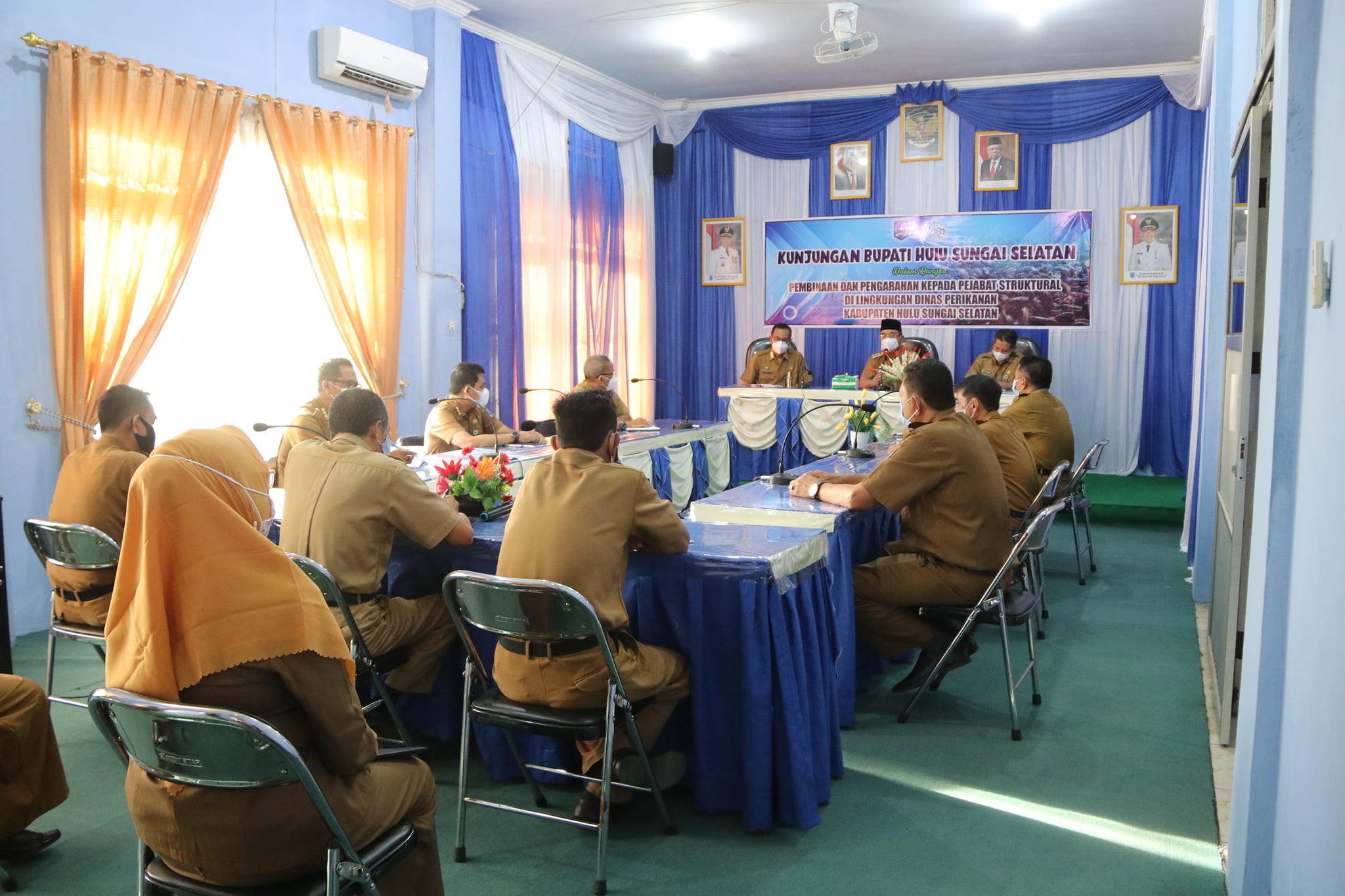 Dalam hal ini Dinas Perikanan Kab.HSS yang mendapat giliran dikunjungi pada hari ini, bertempat di Aula Dinas Perikanan. Selasa (11/05/2021).