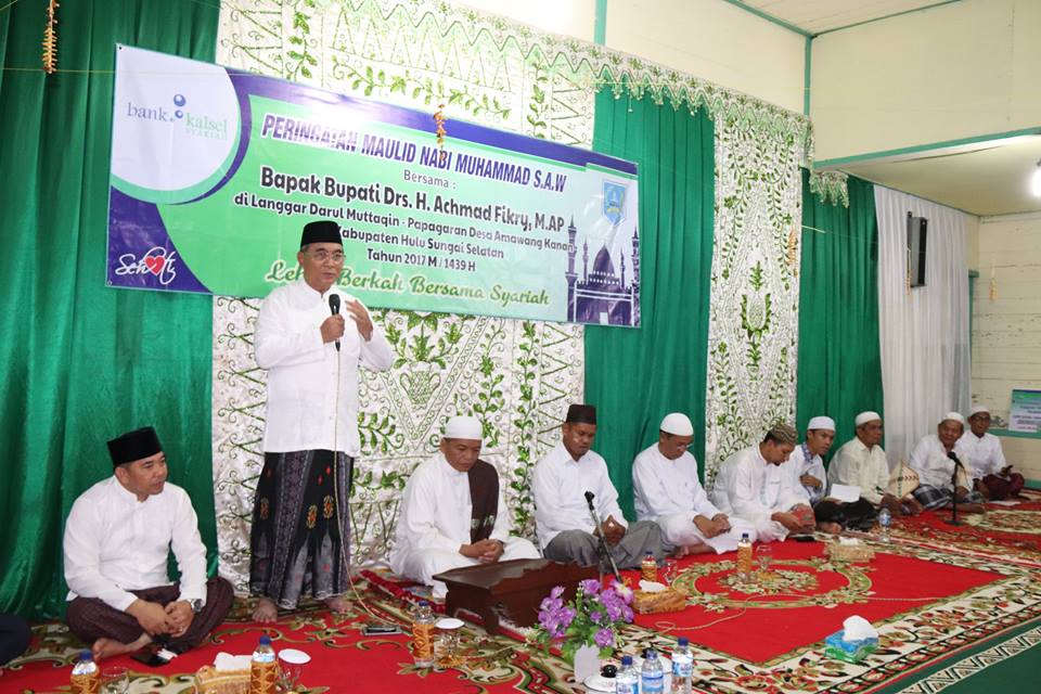 Bertempat di Langgar Darul Muttaqin Papagaran Desa Amawang Kanan Kecamatan Kandangan, Bupati Hulu Sungai Selatan Drs. H. Achmad Fikry, M.Ap menghadiri kegiatan “Peringatan Maulid Nabi Muhammad S.A.W”.