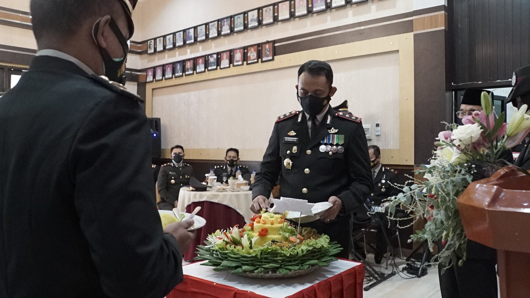 “Acara syukuran yang merupakan tradisi ini tentunya diselenggarakan sebagai wujud rasa syukur kita kepada Tuhan Yang Maha Esa atas segala petunjuk berkah dan hidayahnya kepada segenap keluarga besar Polri dalam melaksanakan tugas dan tanggung jawabnya mengabdi kepada masyarakat dan negara, selama 75 Tahun Polri telah melaksanakan tugas dan pengabdiannya dalam memelihara keamanan dan ketertiban masyarakat yang tentunya tidak terlepas dari dukungan dan bantuan dan kerjasama dari seluruh elemen lapisan masyarakat maupun stakeholder yang ada,” katanya.