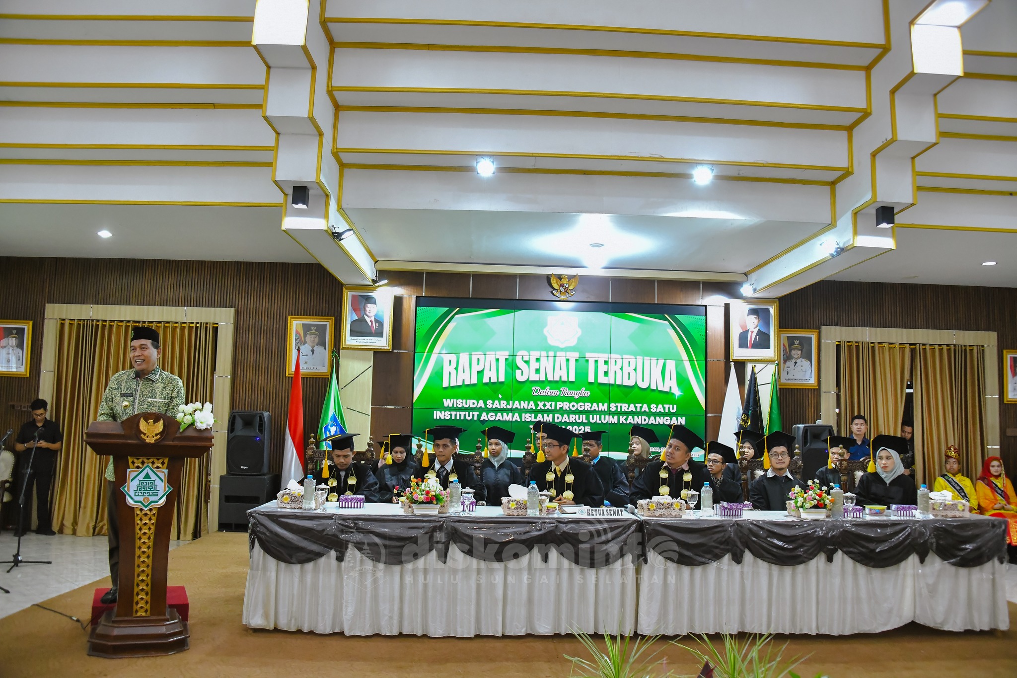 Sabtu (28/6) pagi, Suasana haru dan kebanggaan menyelimuti Pendopo Kabupaten Hulu Sungai Selatan (HSS) yang hari ini menjadi saksi Acara Wisuda Ke-21 Institut Agama Islam (IAI) Darul Ulum Kandangan. Acara ini dihadiri langsung oleh Bupati Hulu Sungai Selatan, H. Syafrudin Noor, SE., S.Sos, yang juga dihadiri jajaran Forkopimda HSS, Para Alim Ulama, Guru-guru Agama, Koordinator Kopertais Wilayah XI/II Kalimantan, Ketua Dewan Pembina Yayasan Darul Ulum Kandangan, para rektor dan anggota senat, serta seluruh wisudawan dan wisudawati bersama keluarga.