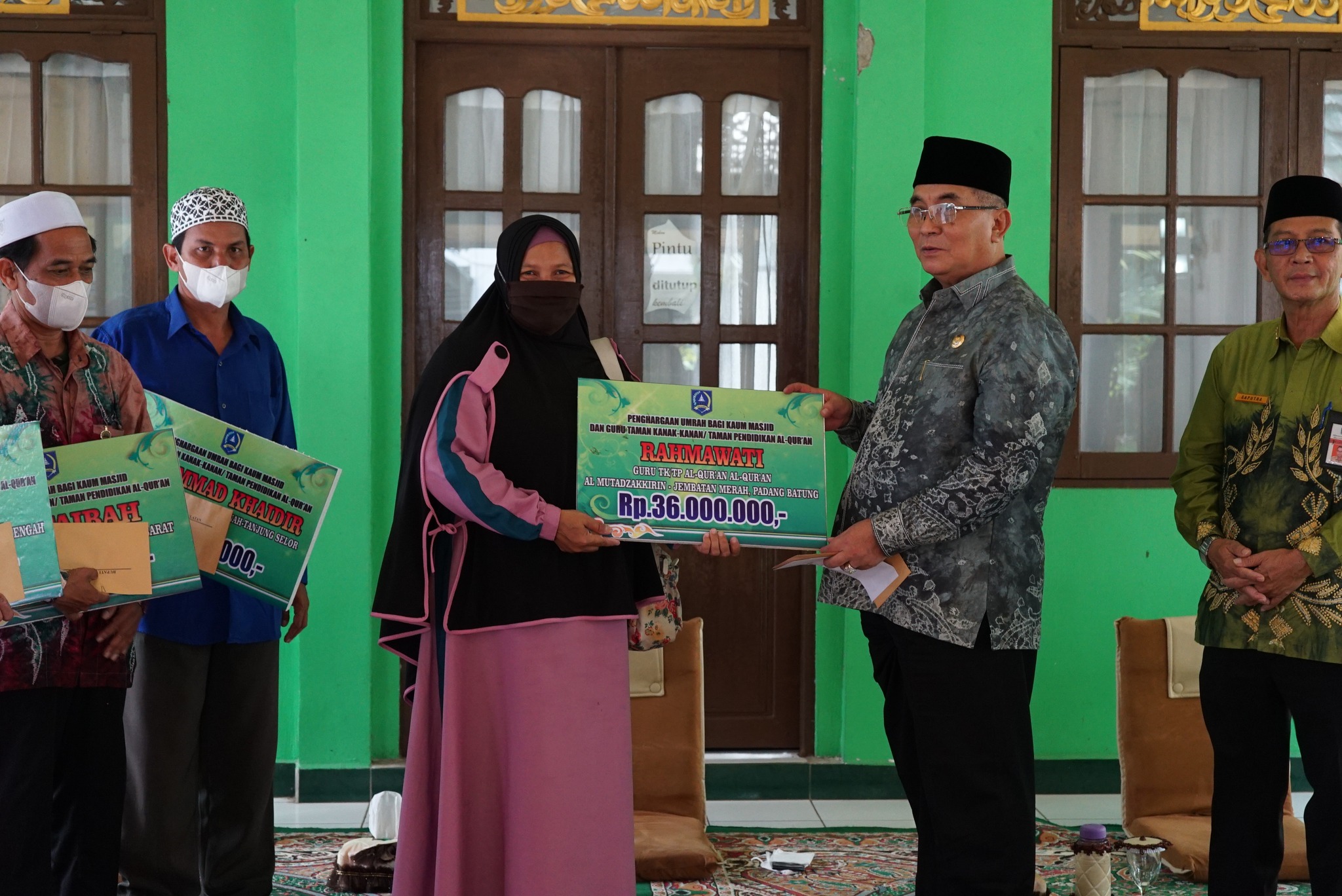 Adapun penerima penghargaan umroh pemerintah kab. HSS Atas nama : Nurdin kaum Mesjid Miftahul Jannah Wasah Tengah, Khutaibah kaum Mesjid Alminnah Kandangan, Muhammad khaidir guru TK Al Qur’an Al Muawwanah Tanjung Selor Daha Barat serta Rahmawati guru TK Al Qur’an Al Mutadazakkirin Jembatan Merah Padang Batung.
