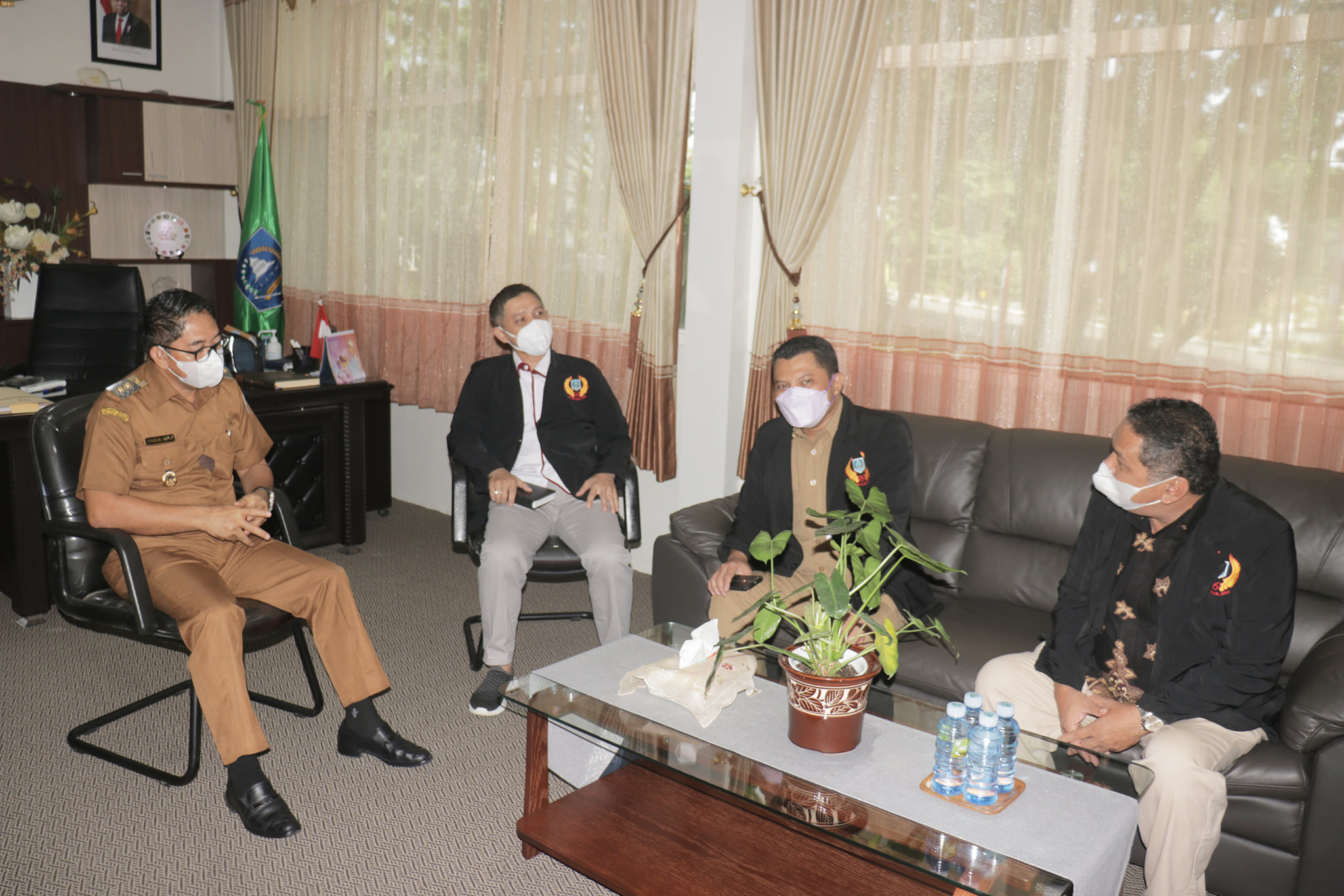 Bupati Hulu Sungai Selatan Drs. H. Achmad Fikry, M.AP menerima audiensi dengan pengurus Komite Olahraga Nasional Indonesia Kab. HSS bertempat di Ruang Kerja Bupati HSS, Senin (02/08).