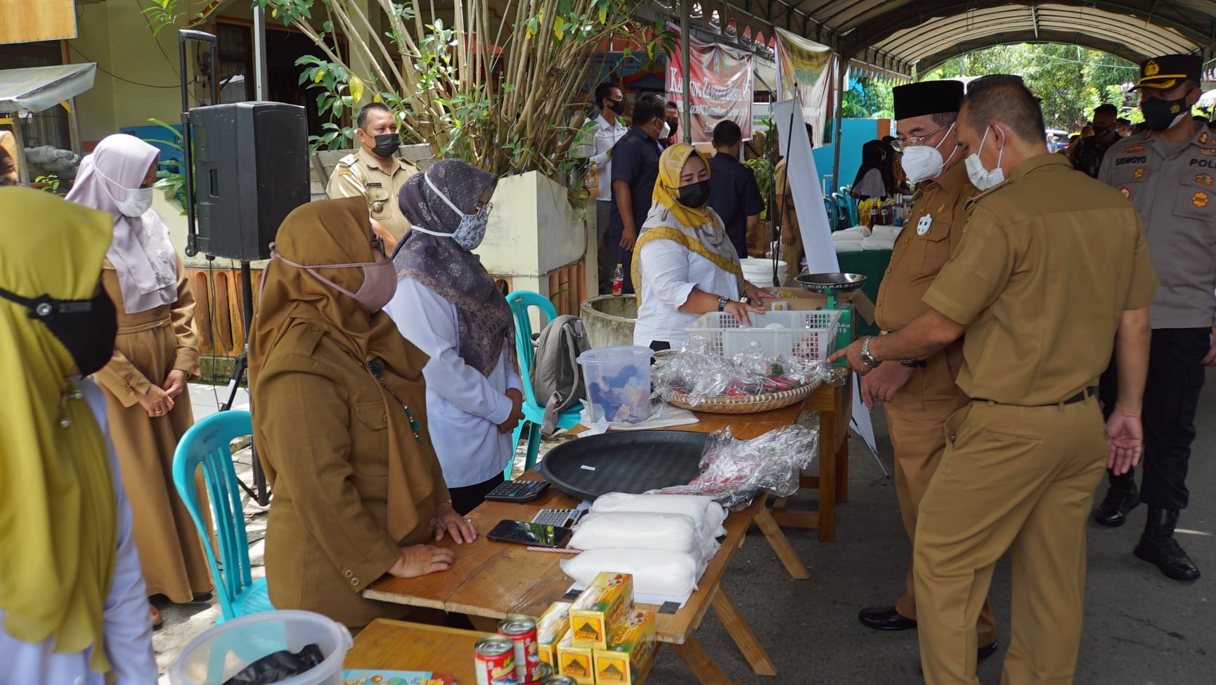Pada saat peninjauan Bupati HSS kembali mengingatkan masyarakat yang beserta jajarannya yang melaksanakan transaksi jual beli agar terus memperhatikan protokol kesehatan saat melakukan transaksi jual beli.