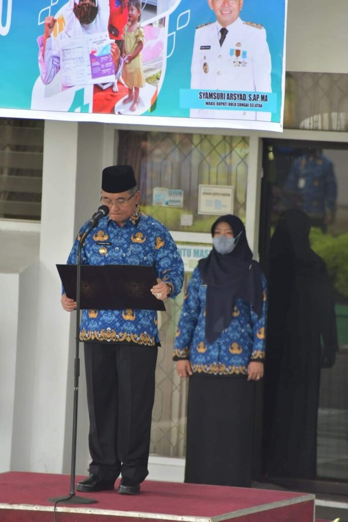 Dalam Peringatan Hari Kesehatan Nasional ke -58 ini Bupati HSS H Achmad Fikry membacakan sambutan tertulis Menteri Kesehatan Republik Indonesia Budi Gunadi Sadikin dengan tema “Bangkit Indonesiaku, Sehat Negeriku”.