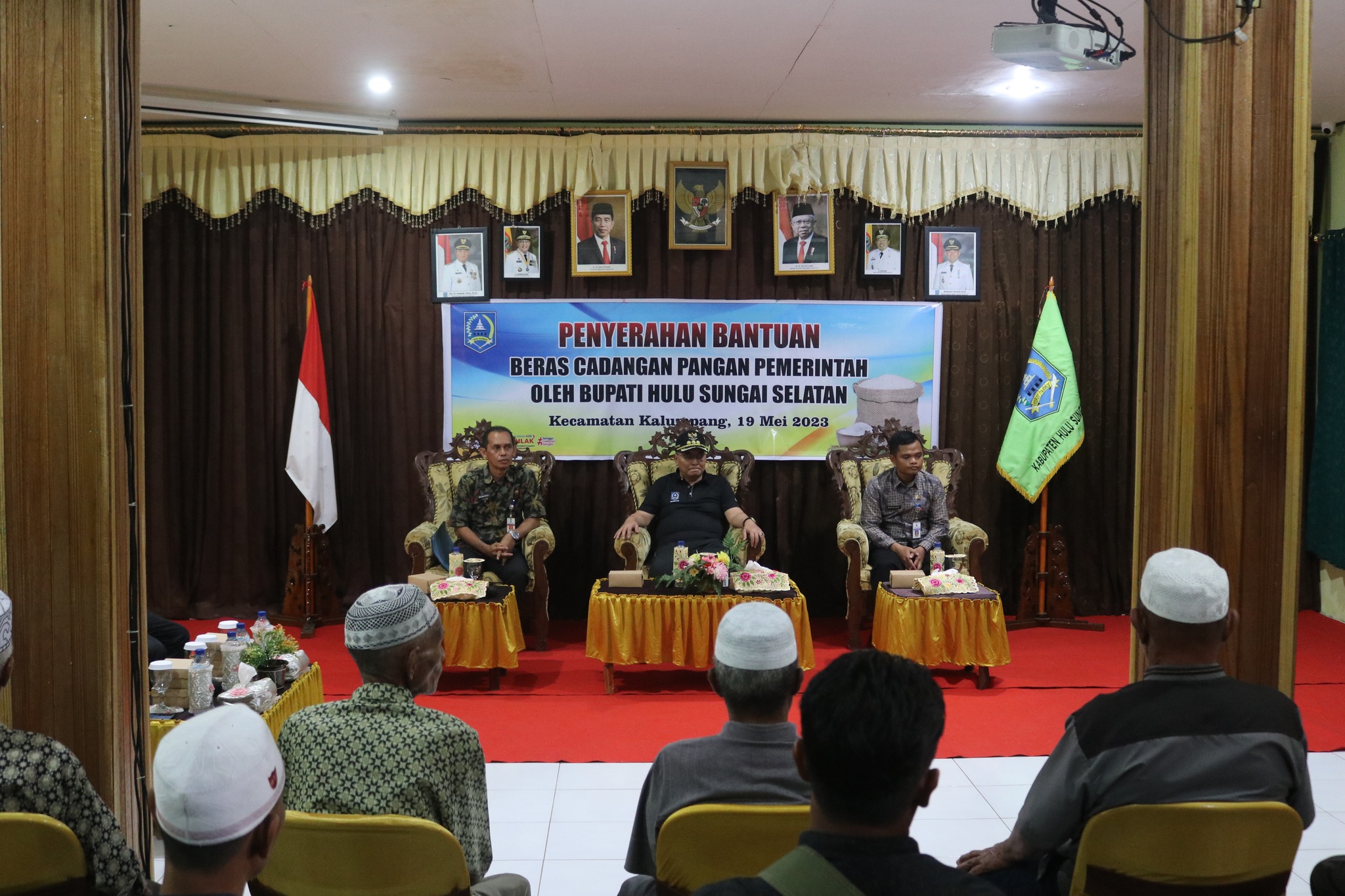 Penyerahan bantuan Beras CPP tersebut turut dihadiri Kepala Dinas Sosial Kab. HSS, Sekretaris Dinas Ketahan Pangan Kab. HSS, Sekretaris Dinas Pertanian Kab. HSS, Kabag Ekobang Setda Kab. HSS, Plt. Camat Kalumpang, dan Kepala Desa se-Kecamatan Kalumpang, serta undangan lainnya.