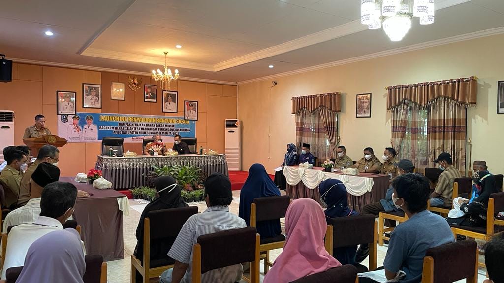 Mengawali kegiatannya pada pagi hari ini, Senin, (07/11/2022). Bupati Hulu Sungai Selatan (HSS) Drs. H. Achmad Fikry, M. AP menyerahkan Penyaluran Bantuan Sosial Dampak Kenaikan Bahan Bakar Minyak Bagi Keluarga Penerima Manfaat (KPM) Beras Sejahtera Daerah dan Penyandang Disabilitas APBD Kabupaten Hulu Sungai Selatan Tahun Anggaran 2022 yang dilaksanakan di Aula Kecamatan Padang Batung.
