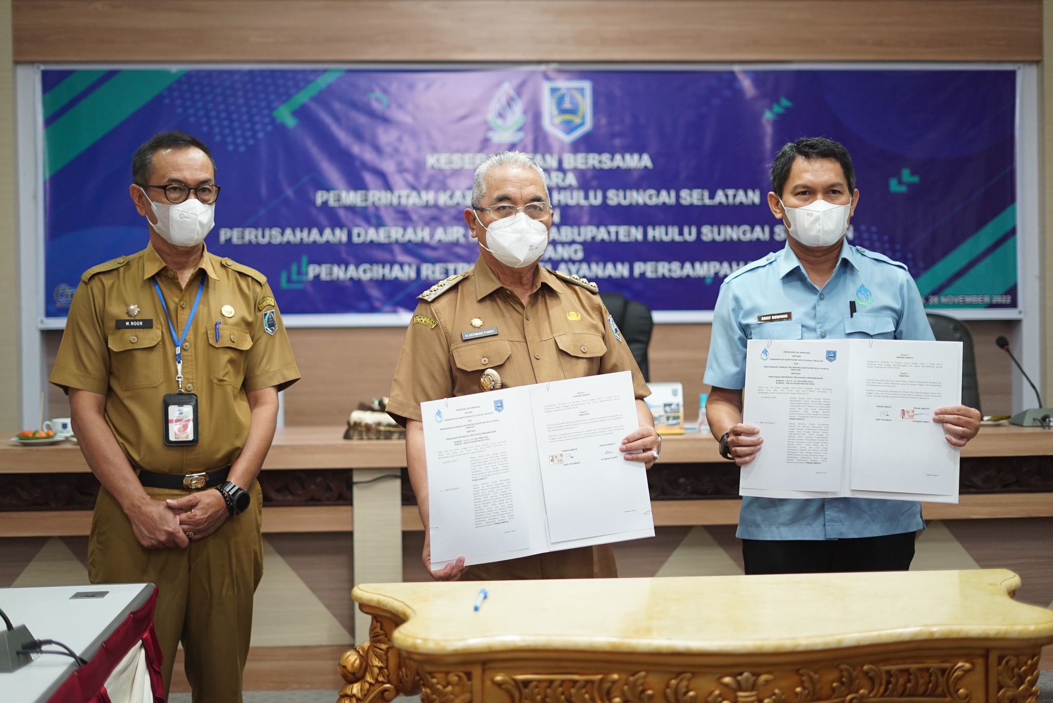 Adapun Kesepakatan bersama Pemerintah Kabupaten Hulu Sungai Selatan dengan Perusahaan Daerah Air Minum (PDAM) Kab. HSS ini berisi tentang Penagihan Retribusi Pelayanan Persampahan yang nantinya akan dikaitkan dengan penerimaan pembayaran jasa air.