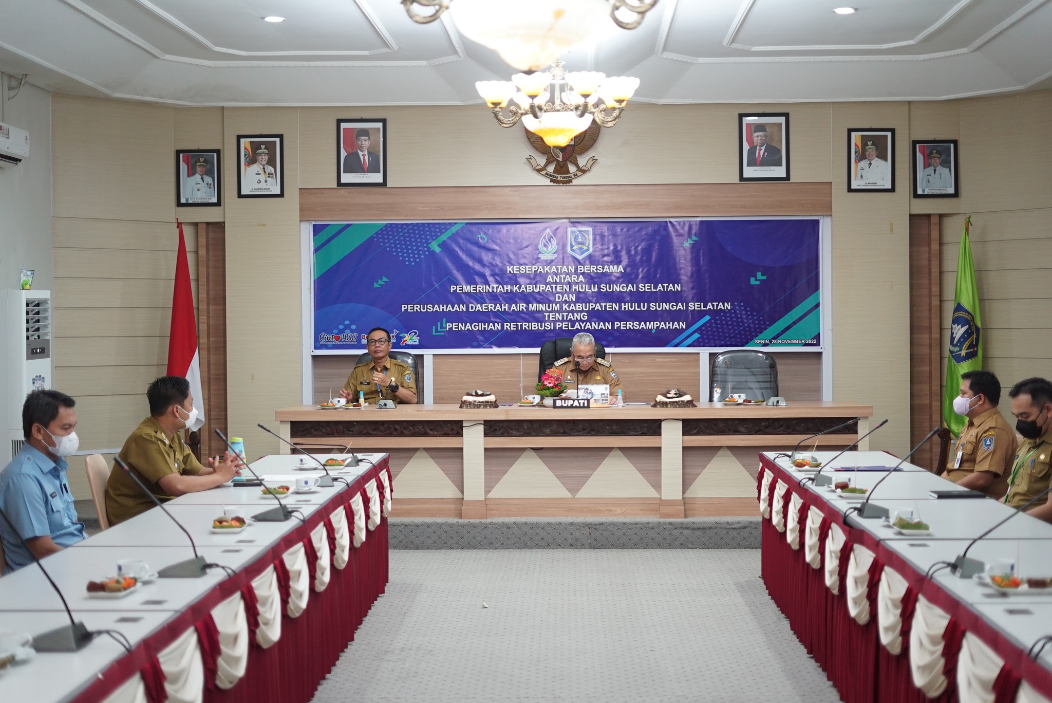 Bertempat di Aula Rakat Mufakat, Sekretariat Daerah Kab. Hulu Sungai Selatan (HSS). Pagi ini, Bupati HSS Drs. H. Achmad Fikry, M.AP didampingi oleh Sekretaris Daerah Kab. HSS Drs. H. Muhammad Noor, M. AP melakukan Penandatangan kesepakatan bersama, Senin, (28/11).