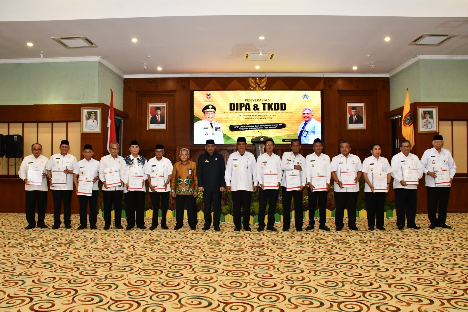 Penyerahan DIPA dan TKDD ini dilakukan langsung oleh Gubernur Kalimantan Selatan (Kalsel) H. Sahbirin Noor (Paman Birin) secara simbolis kepada 13 Kepala Daerah Kabupaten/Kota serta sejumlah instansi lainnya yang berada di bawah Pemerintah di Kalsel di Gedung DR. KH. Idham Chalid Komplek Perkantoran Provinsi Kalimantan Selatan, Banjarbaru, Rabu (27/11/19).