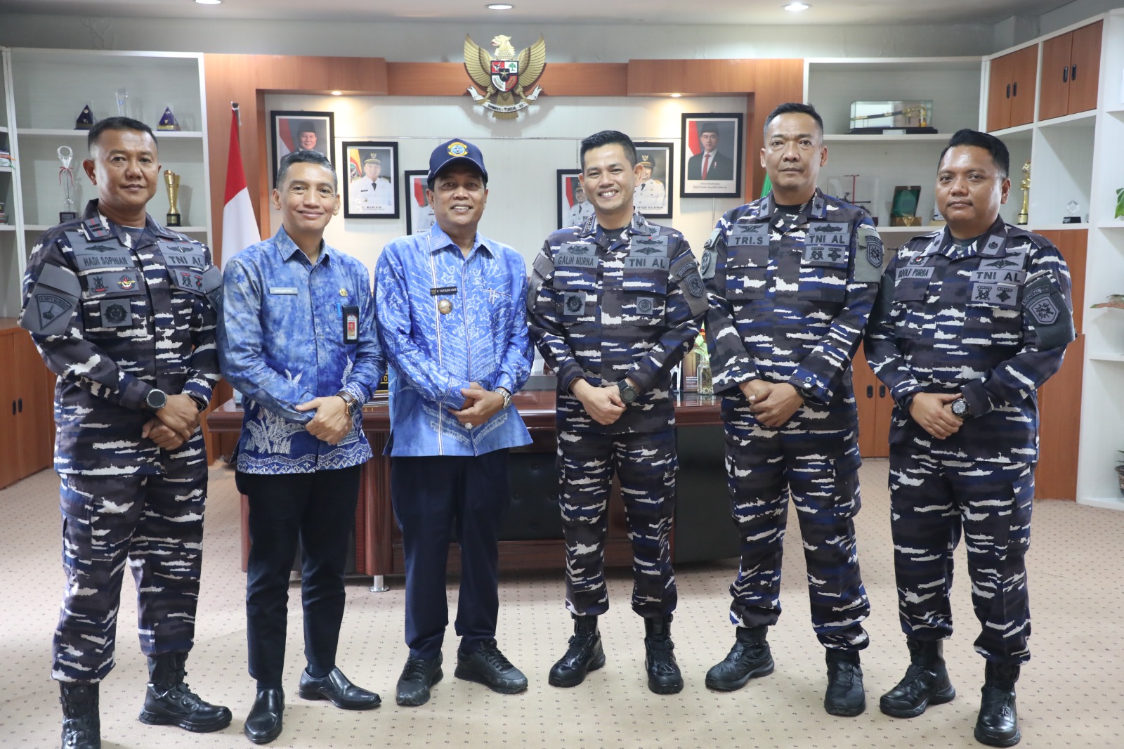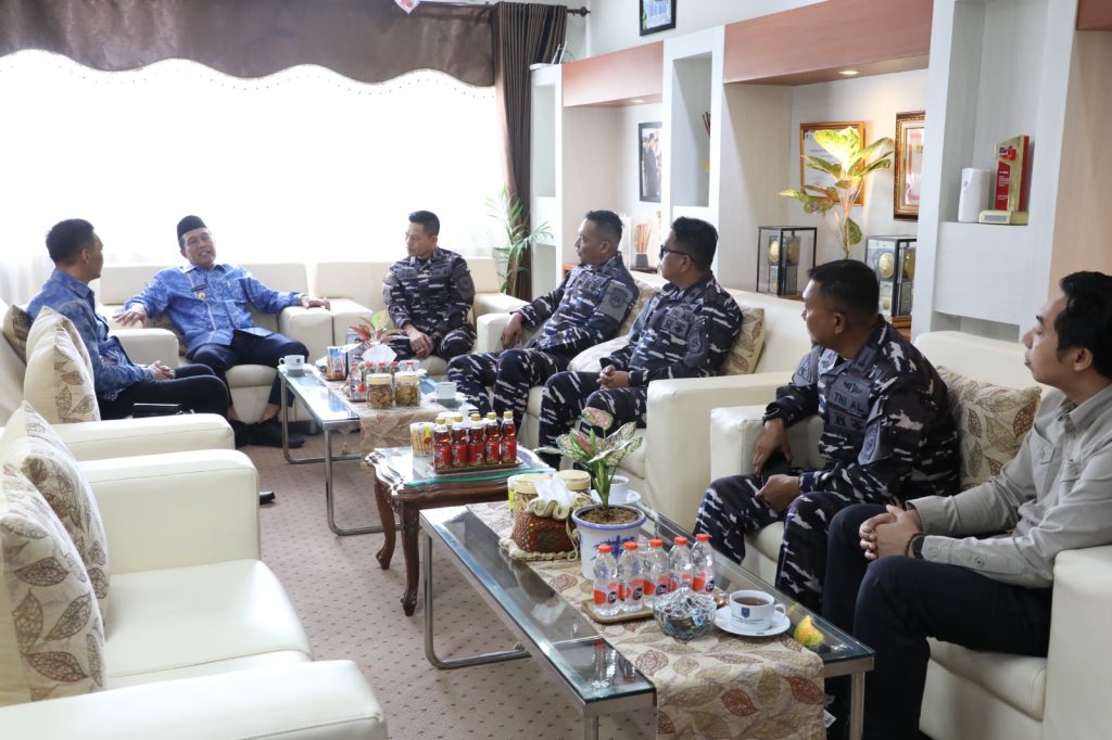 Bupati Hulu Sungai Selatan (HSS), H. Syafrudin Noor, SE., S.Sos., menerima kunjungan kerja Komandan Pangkalan TNI Angkatan Laut (Danlanal) Banjarmasin, Letkol Laut (P) Galih Nurna Putra, di ruang kerja Bupati, Kamis (23/4/2026).