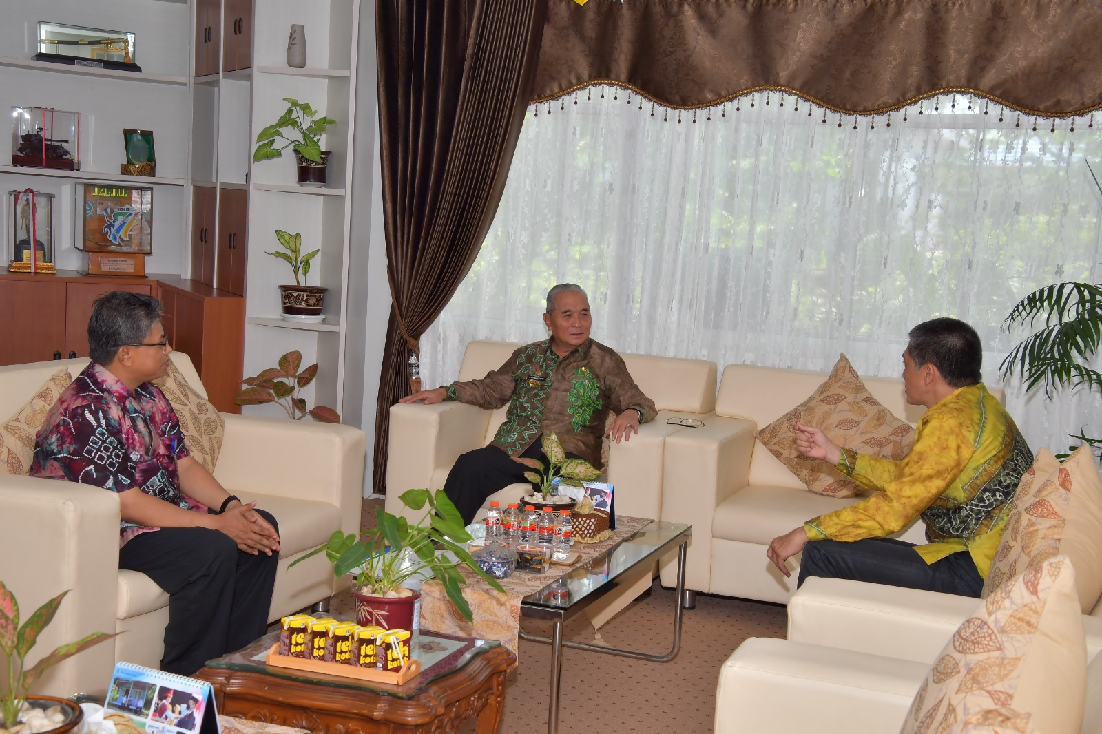 Bupati Hulu Sungai Selatan Drs. H. Achmad Fikry, M.AP menerima kunjungan dari PLT Direktur Utama Bank Kalsel Fachruddin di ruang kerja Bupati. Kamis (27/04)