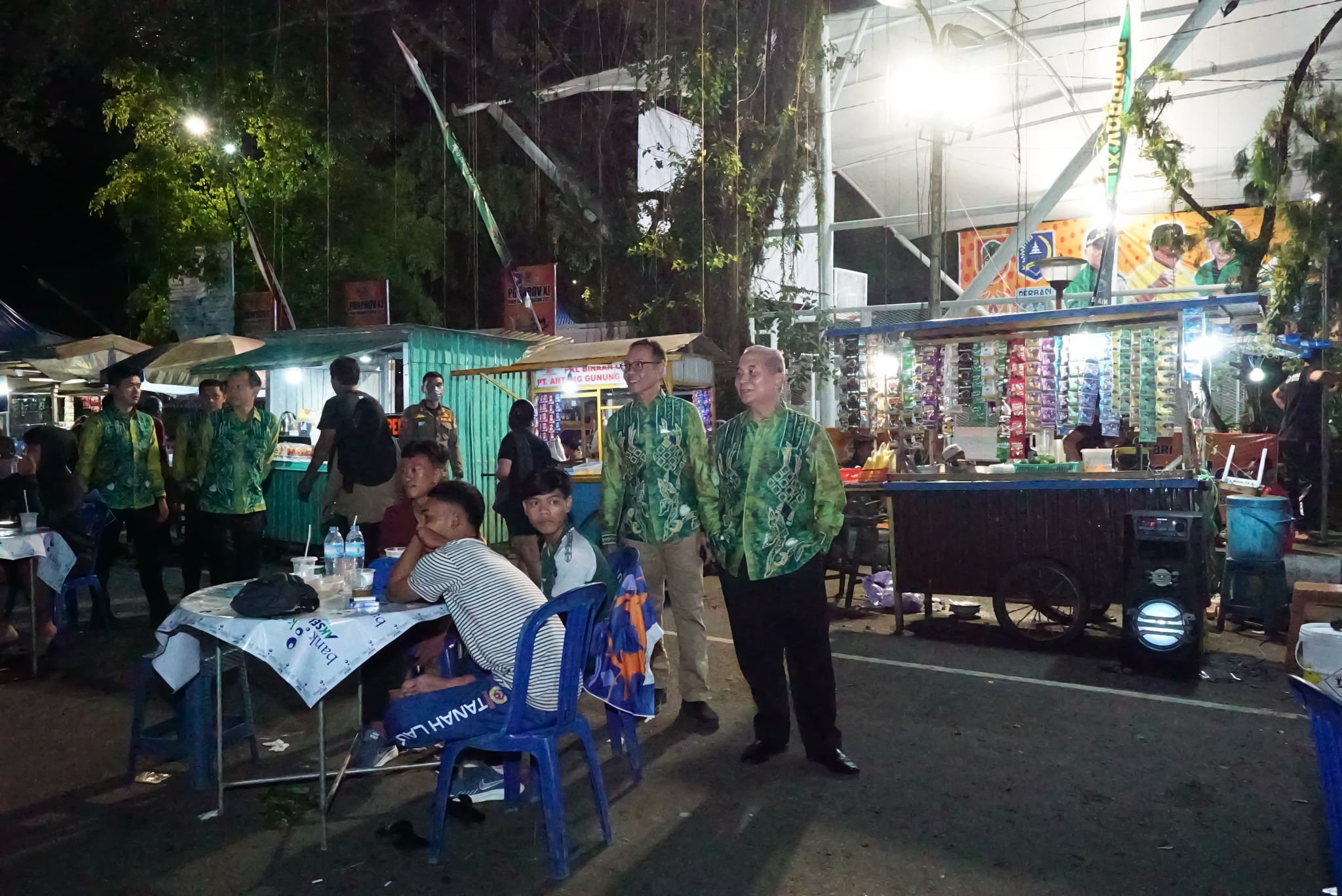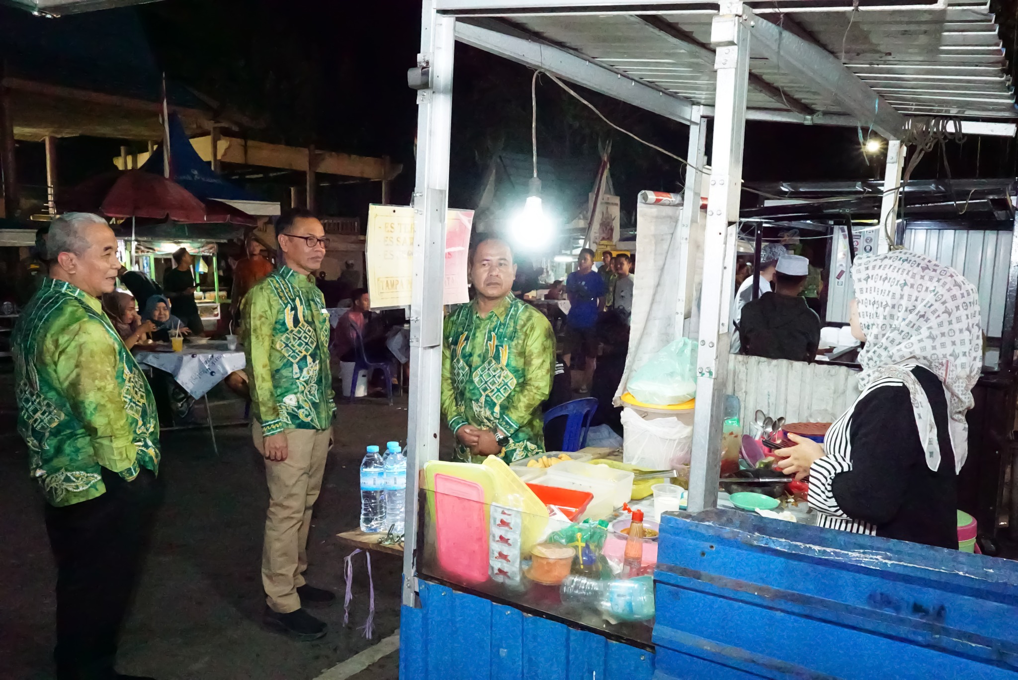 Setelah selesai acara ramah tamah bersama para kontigen Porprov XI Kalsel, Bupati HSS Drs. H. Achmad Fikry, M.AP didampingi Sekretaris Daerah Kab. HSS Drs. H. M Noor, M.AP beserta jajarannya menyempatkan untuk meninjau dan menyapa para pedagang jajanan kuliner yang berada di depan sekitaran Gedung MTQ Kandangan.