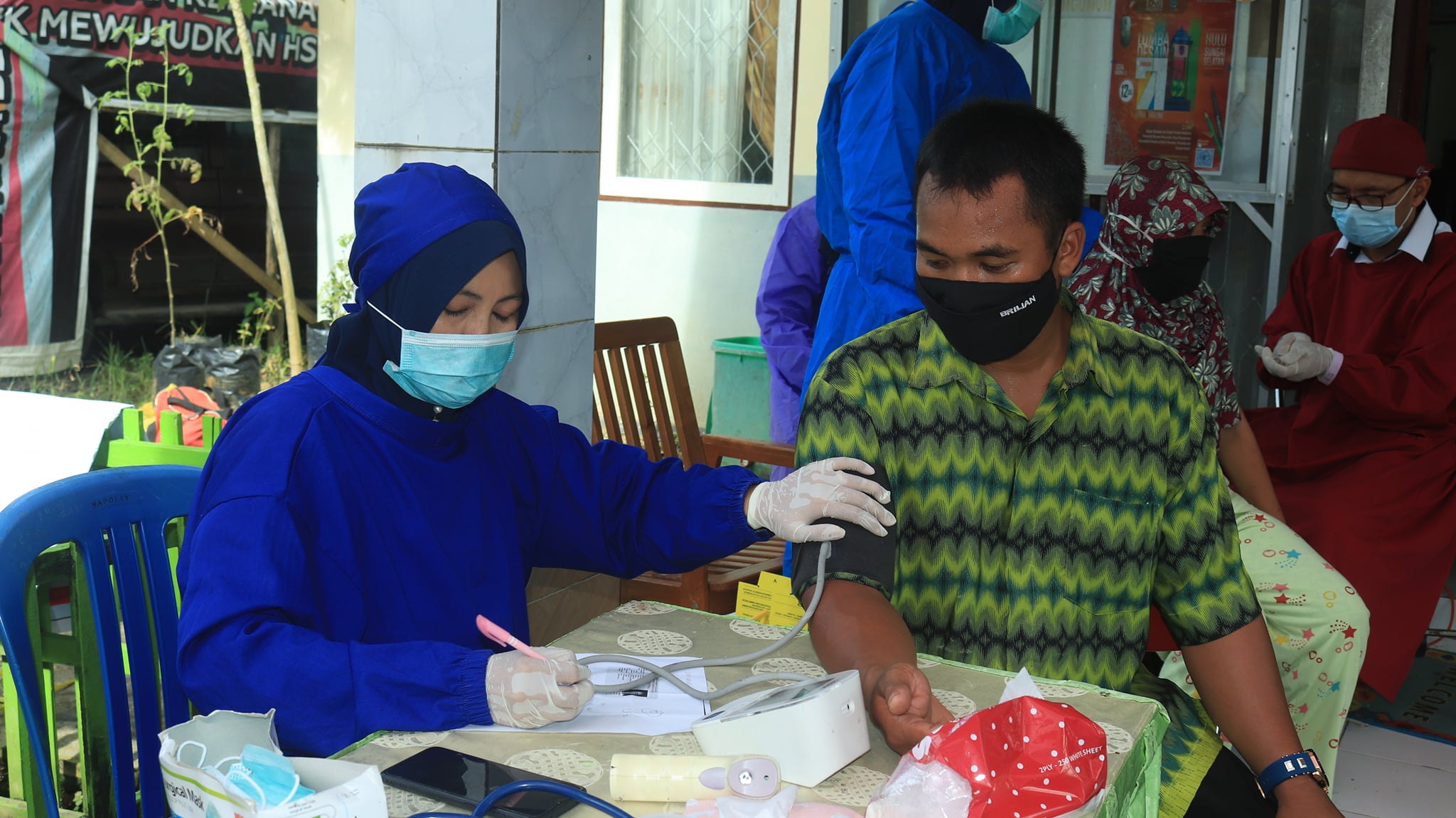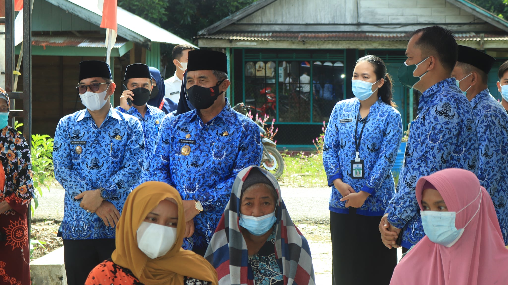 Setelah meninjau pelaksanaan vaksinasi yang difasilitasi oleh BIN, Bupati Hulu Sungai Selatan Des. H. Achmad Fikry, M. AP didampingi Wakil Bupati Hulu Sungai Selatan Syamsuri Arsyad, S. AP, MA meninjau pelaksanaan vaksinasi di Madrasah Aliyah Negeri 2 Kandangan dan di Kantor Desa Ambutun Kec. telaga Langsat.