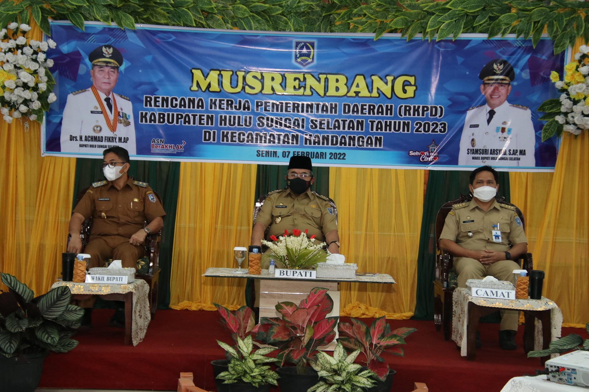 Bertempat di Kantor Kecamatan Kandangan, Bupati Hulu Sungai Selatan (HSS) Drs. H. Achmad Fikry, M.AP didampingi Wakil Bupati Hulu Sungai Selatan Syamsyuri Arsyad, S. AP, MA menghadiri Musyawarah Rencana Pembangunan (Musrenbang) Rencana Kerja Pemerintah Daerah (RKPD) Tahun 2023.Senin(07/02/2022)