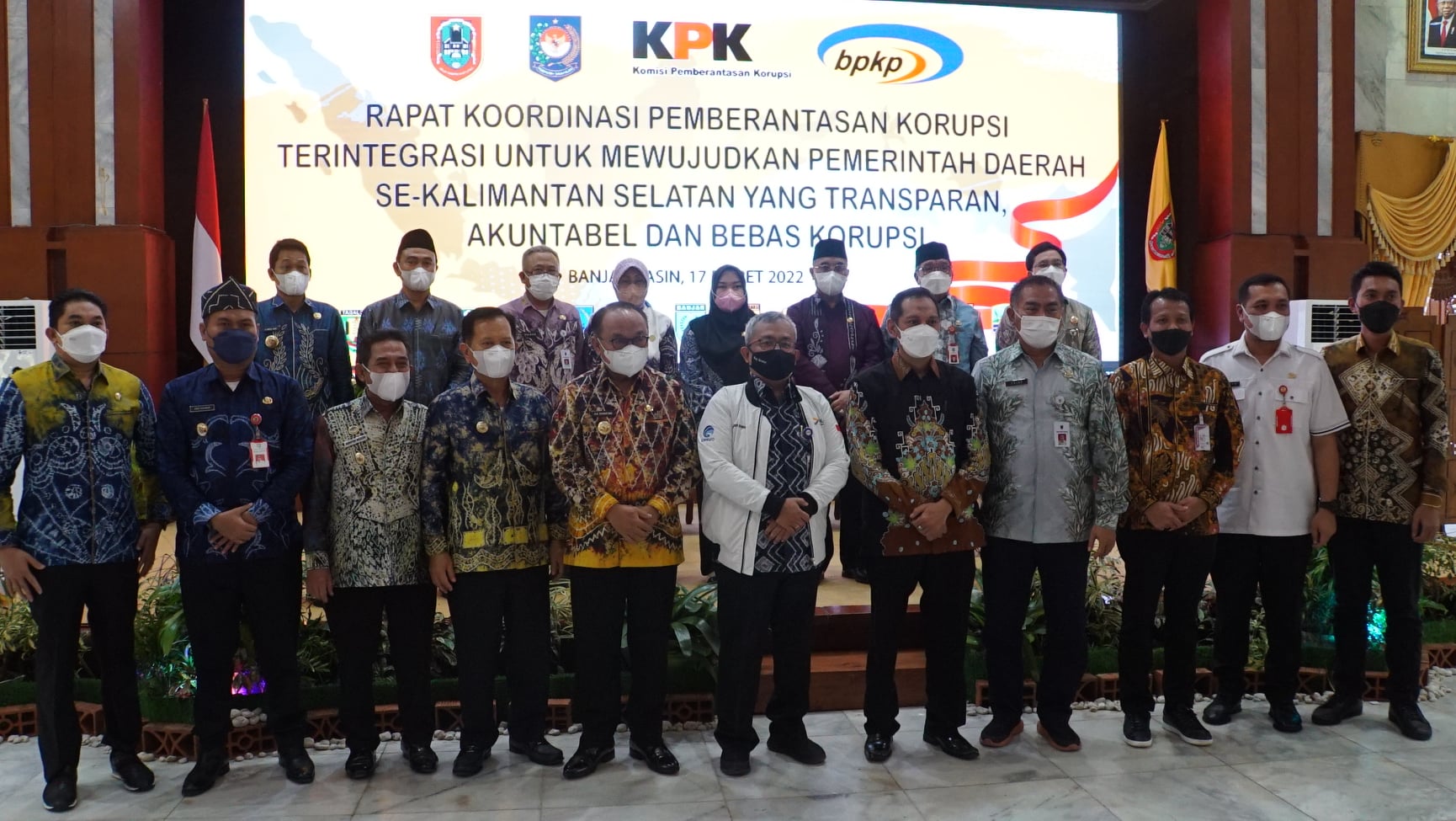 Rakor ini melibatkan Kementerian Dalam Negeri dan Badan Pengawasan Keuangan dan Pembangunan (BPKP), dibuka secara resmi oleh Gubernur Kalsel H. Sahbirin Noor, S.Sos, M.H dan diikuti oleh seluruh Bupati/Walikota, Ketua DPRD Kab/Kota, Sekda Kab/Kota, dan Inspektur Kab/Kota se-Kalsel.Gubernur Kalsel, Sahbirin Noor menyampaikan melalui Rakor Pemberantasan Korupsi bahwa dirinya menyambut baik Komisi Pemberantasan Korupsi Republik Indonesia yang telah memberikan komitmen terhadap upaya pemberantasan korupsi di Indonesia terkhusus di wilayah Kalsel, dimana dalam hal ini KPK RI menggelar rakor yang secara spesifik membahas pencegahan korupsi melalui perbaikan tata kelola layanan publik.Kemudian menurutnya dari berbagai aspek birokrasi pemerintahan saat ini, korupsi masih menjadi musuh utama dalam tata kelola pemerintahan dan pembangunan, demikian ia berharap pada kegiatan hari ini dapat memantapkan komitmen bersama untuk perbaikan dengan sasaran untuk mewujudkan pemerintahan yang profesional dan bebas korupsi khususnya di wilayah Kalimantan Selatan.”Kami di Provinsi Kalimantan Selatan sangat merasakan perlunya tindakan terukur dan terstruktur untuk membangun birokrasi pemerintahan yang terintegritas, sehingga kami memandang penting terselenggaranya kegiatan ini, sebagai bagian dari supervisi yang dilakukan oleh Komisi Pemberantasan Korupsi,” ucap Gubernur.Lebih lanjut, Ia juga mengapresiasi para kepala daerah yang telah berupaya dalam memberikan komitmennya dalam pencegahan korupsi, sehingga dapat menghasilkan lonjakan yang signifikan pada program Monitoring Center Prevention (MCP) di tahun 2021 yang dicanangkan oleh KPK.“Kami di tingkat Provinsi Kalimantan Selatan akan terus mengawal program ini, dimana dengan supervisi dan mentor yang dilakukan oleh KPK, BPKP serta Kemendagri, tentu ini menjadi suatu harapan sebuah sinergitas dalam langkah kita menjaga kelestarian pembangunan agar tidak terhambat dengan yang namanya korupsi,” lanjutnya.Ia juga mengajak kepada kepala daerah untuk terus meningkatkan komitmen untuk mencegah terjadinya korupsi dan ia harap para kepala daerah tersebut dapat menyampaikan hal-hal yang menjadi hambatan dan tantangan dalam menyelenggarakan aksi pencegahan korupsi di Kalsel pada rakor kali ini. Kepada narasumber, ia juga berharap agar dapat memberikan arahan, rekomendasi, serta masukan sehingga dapat mewujudkan pemerintahan daerah yang profesional dan bebas korupsi dengan status tujuan “Rakyat Dalam Suasana Kesejahteraan”.