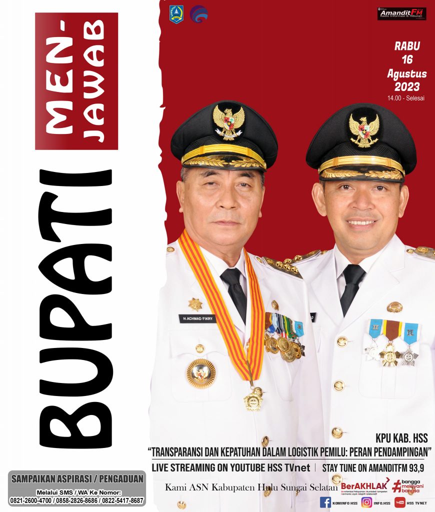 Program Bupati Menjawab pada hari Rabu pukul 14.00 siang, kita akan kedatangan narasumber dari KPU Kab. HSS dengan mengusung tema “Transparansi dan Kepatuhan dalam Logistik Pemilu: Peran Pendampingan” yang tentunya menarik untuk kita ketahui bersama.