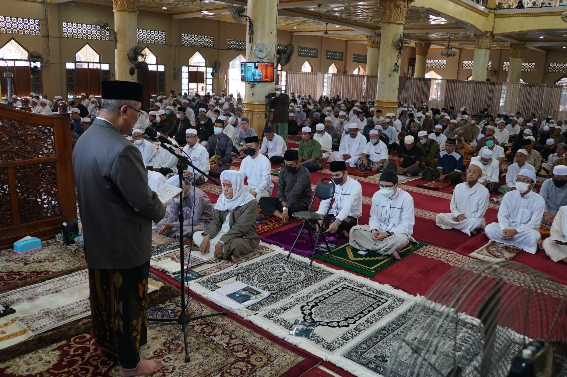 Sesaat sebelum sholat Ied dimulai, Bupati menyampaikan ucapan selamat kepada warga HSS yang bisa merayakan Idul Fitri tahun ini, dengan sedikit lenih leluasa dari 2 tahun sebelumnya. Dirinya juga merasa gembira dapat kembali melaksanakan Sholat Ied bersama warga, setelah tahun-tahun sebelumnya terkendala karena wabah Covid-19.
