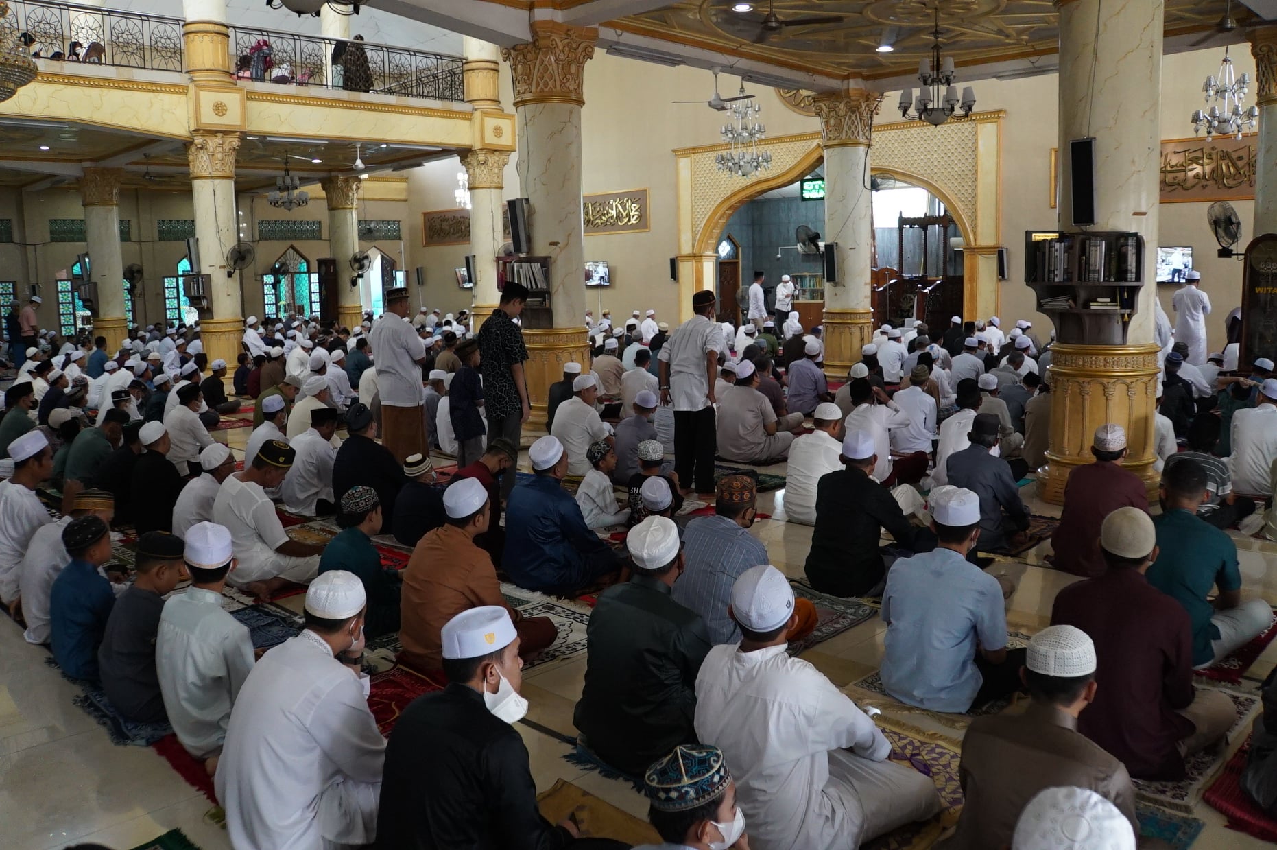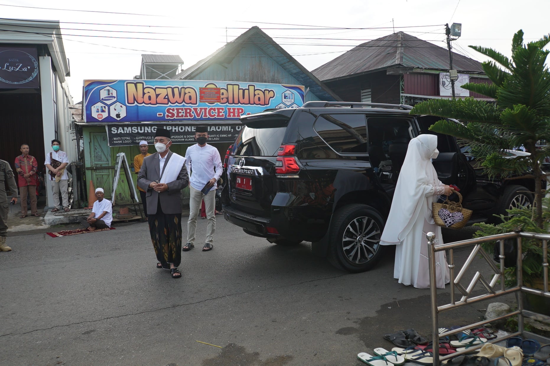 Ribuan warga Kota Kandangan, hari ini berduyun-duyun datang melaksanakan Sholat Idul Fitri di Masjid Agung Taqwa. Bupati Hulu Sungai Selatan (HSS) Drs. H. Achmad Fikry, M.AP hari ini ikut merasakan kegembiraan warganya, dalam merayakan Hari Raya Idul Fitri 1443 H dengan bersama-sama melaksanakan Sholat Ied di Masjid kebanggaan warga Kandangan ini. Ini merupakan Sholat Idul Fitri yang dilaksanakan dalam suasana agak lebih menggembirakan karena pandemi Covid-19 yang berangsur sudah mereda di Bumi Rakat Mufakat ini. Bupati H. Achmad Fikry sendiri datang didampingi Ketua TP. PKK HSS berserta keluarga dan disambut langsung oleh Ketua Badan Pengurus Masjid Taqwa. (Senin, 02/05)