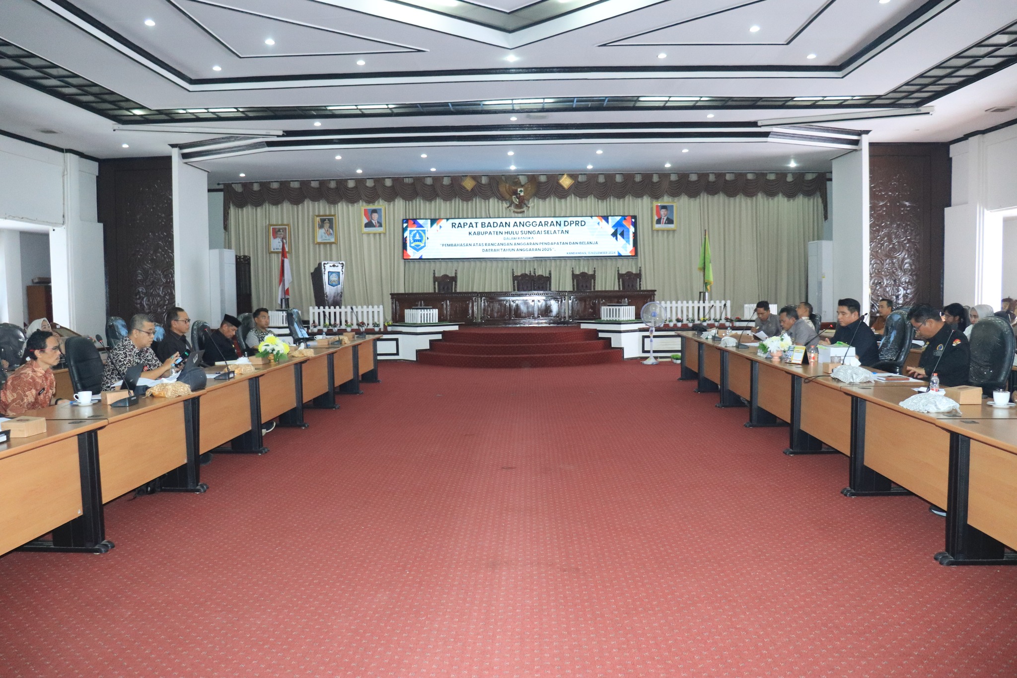 Pembahasan Rancangan Anggaran Belanja Daerah (RAPBD) Kabupaten Hulu Sungai Selatan (HSS) Tahun 2025, berjalan cukup panjang. Hal ini ditandai dengan cukup lamanya waktu yang diperlukan dalam rapat yang digelar di DPRD HSS. Pagi tadi, rapat pembahasan bersama Badan Anggaran (Banggar) DPRD berlangsung di Aula Utama Gedung DPRD HSS, Jl. Merah Johansyah, Kandangan. Rapat dipimpin langsung oleh Ketua DPRD HSS, H. Ahmad Fahmi, SE bersama seluruh anggota Banggar. Sementara dari pihak eksekutif didampingi langsung oleh Sekretaris Daerah Drs. H. Muhammad Noor, M.AP bersama Asisten dan beberapa Kepala OPD terkait. (Jum’at, 15/11).