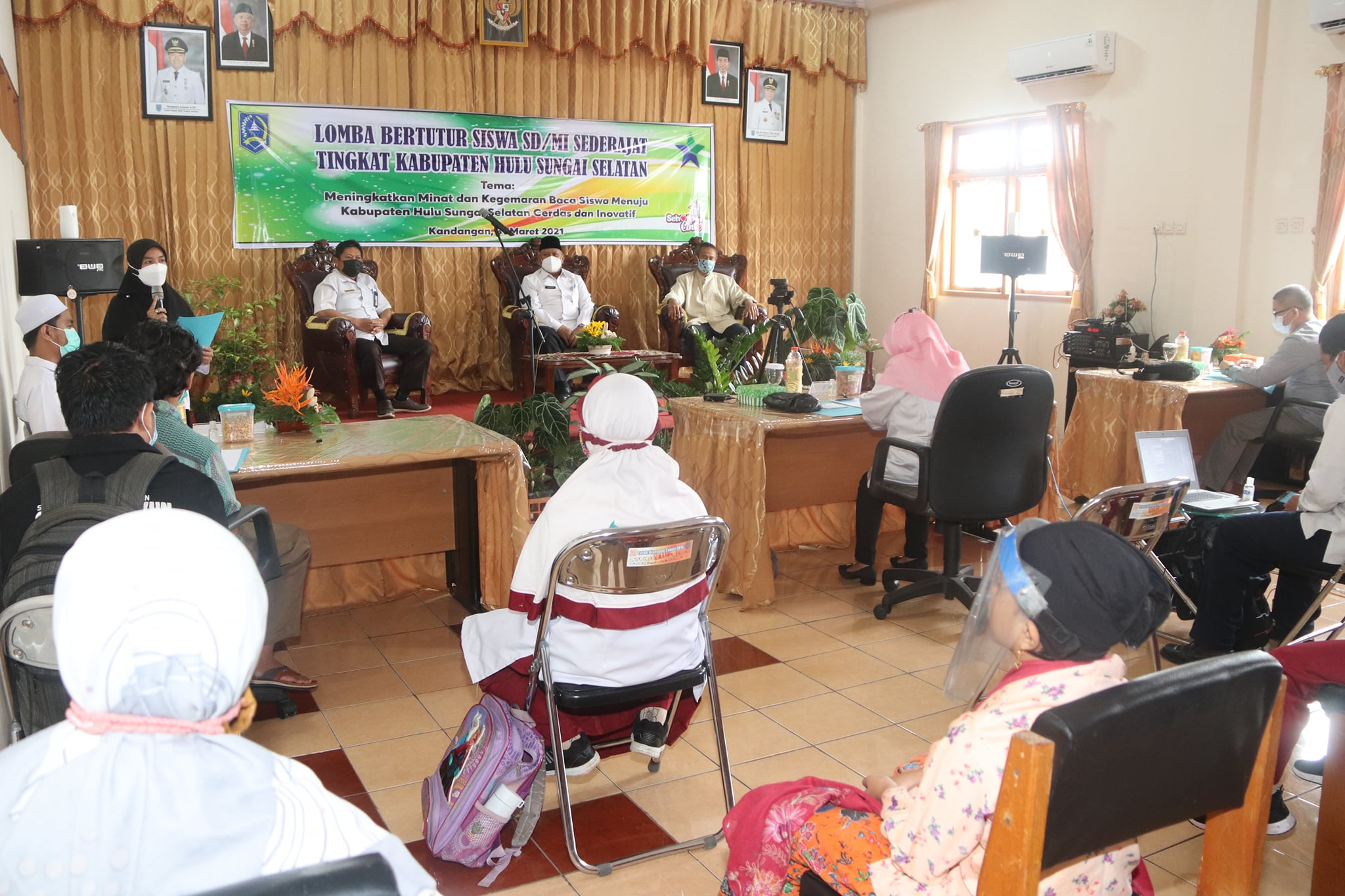 Dinas Kearsipan dan Perpustakaan Kabupaten Hulu Sungai Selatan mengadakan lomba bertutur kata bagi siswa/siswi SD/MI Tingkat Kabupaten Hulu Sungai Selatan Tahun 2021 bertempat di Aula Dinas Kearsipan dan Perpustakaan Kab. HSS. Rabu (31/03/2021)