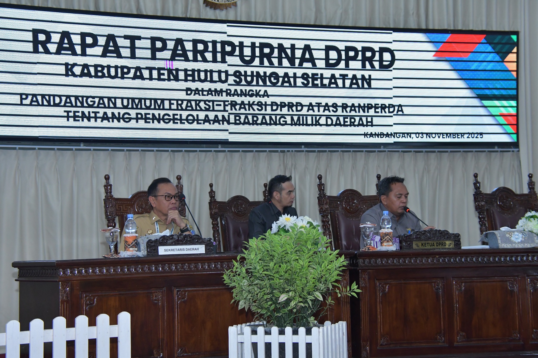 Guna menjamin hal tersebut, Sekretaris Daerah Kabupaten Hulu Sungai Selatan (HSS), Drs. H. Muhammad Noor, MAP, menghadiri Rapat Paripurna DPRD Kabupaten HSS terkait Pandangan Umum Fraksi-Fraksi DPRD atas Rancangan Peraturan Daerah (Raperda) Pengelolaan Barang Milik Daerah. Kegiatan berlangsung pada Senin (03/11) di Lantai II Ruang Rapat Gedung DPRD.