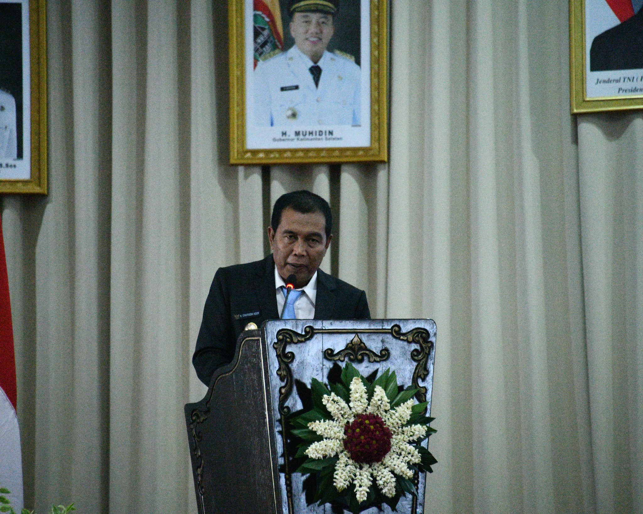 Turut hadir pula unsur Forum Koordinasi Pimpinan Daerah (Forkopimda), Sekretaris Daerah HSS, para anggota DPRD, staf ahli Bupati, jajaran kepala perangkat daerah, Direktur Bank Kalsel, Direktur PDAM.