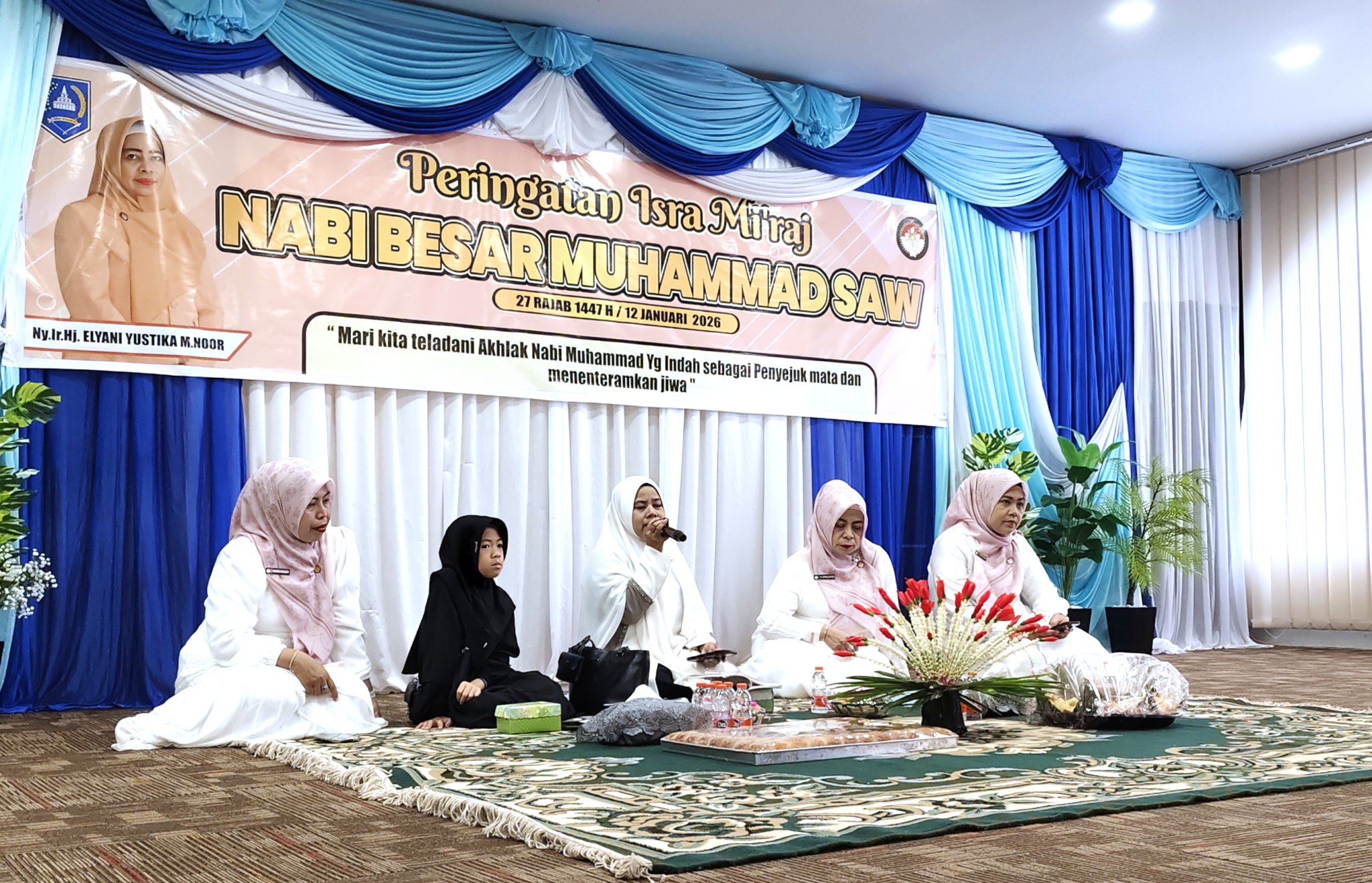 Dharma Wanita Persatuan (DWP) Kabupaten Hulu Sungai Selatan (HSS) menggelar peringatan peristiwa besar Isra Mi’raj Nabi Muhammad SAW di Aula Mall Pelayanan Publik (MPP) Kabupaten HSS, Senin (12/01/2026).