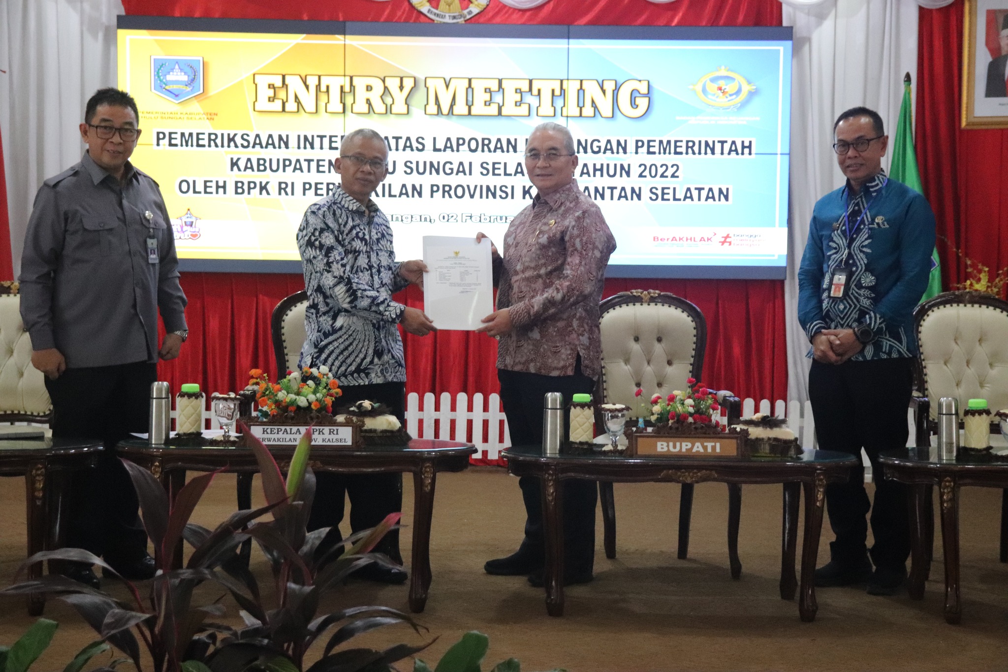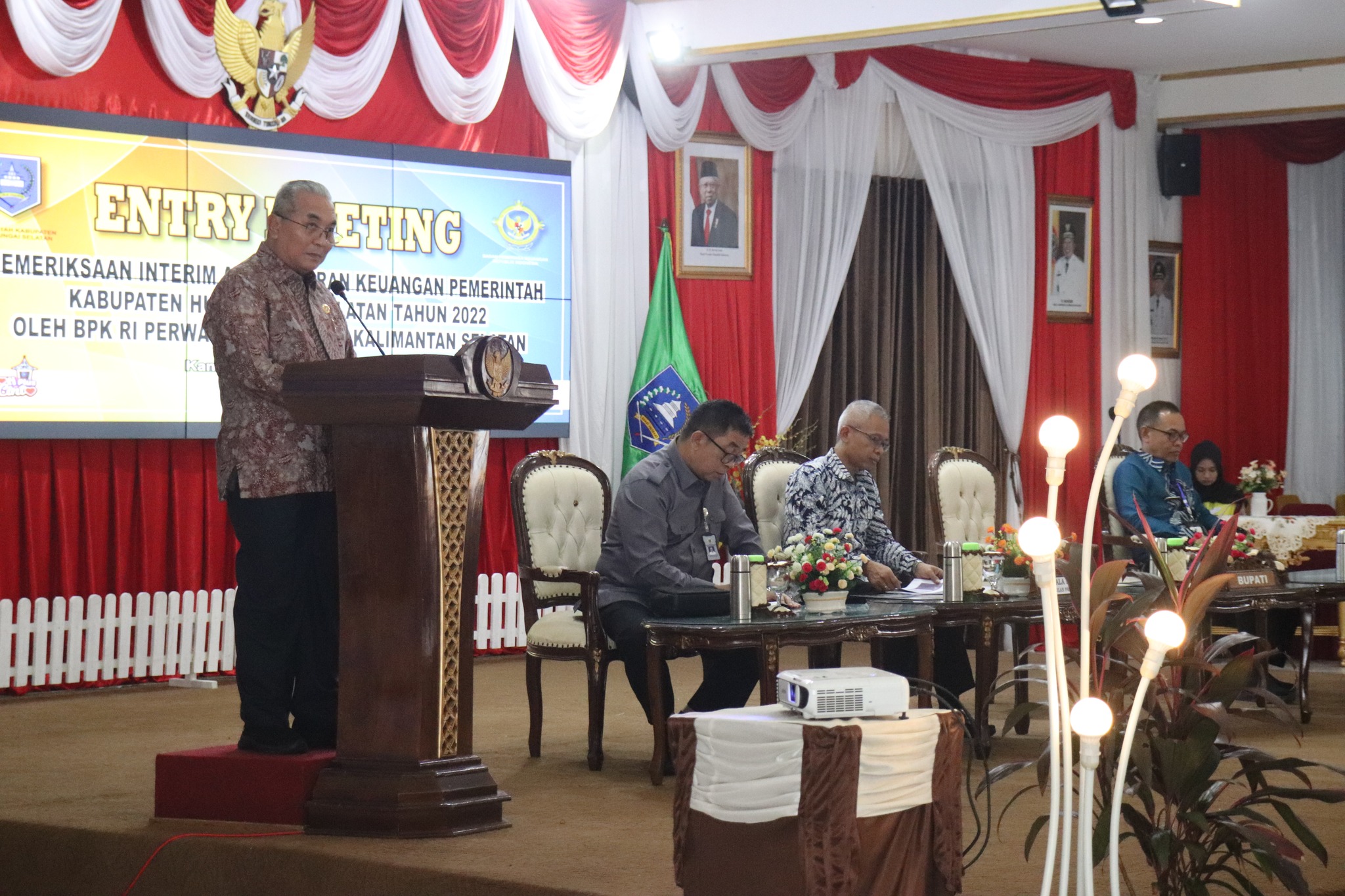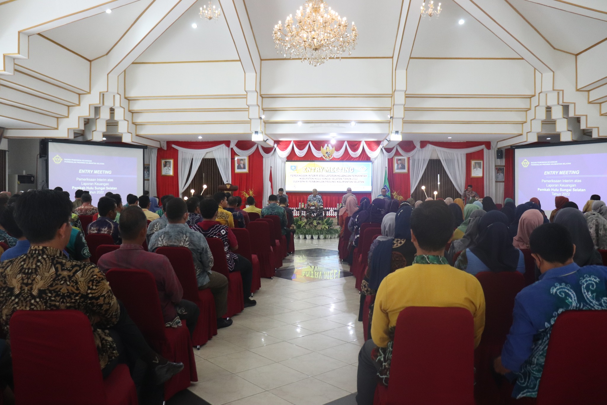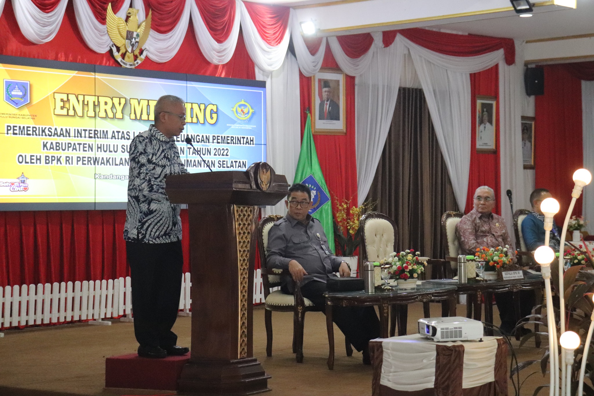 Entry Meeting Pemeriksaan Interim atas Laporan Keuangan Pemerintah Kabupaten Hulu Sungai Selatan (HSS) Tahun 2022 oleh Badan Pemeriksa Keuangan Republik Indonesia (BPK RI) Perwakilan Provinsi Kalimantan Selatan dibuka pada siang ini di Gedung Pendopo Bupati, Kamis (02/02).