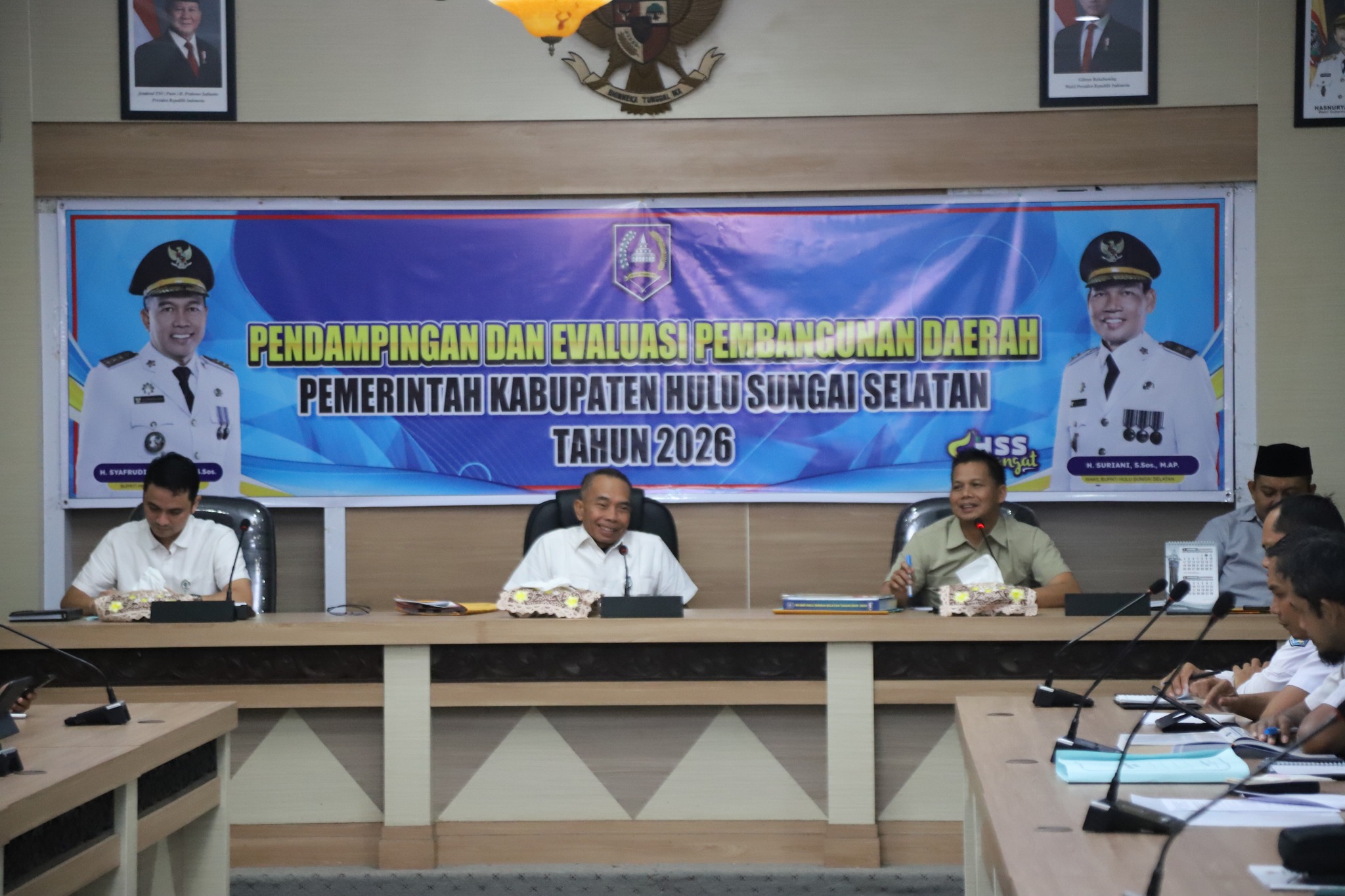 Pemerintah Kabupaten Hulu Sungai Selatan (HSS) kembali melanjutkan agenda strategis pendampingan dan evaluasi pembangunan daerah bersama Tim Pakar Tim Percepatan Pembangunan dan Evaluasi Pembangunan Daerah (TPPEPD). Memasuki hari kedua, pertemuan intensif ini masih dilaksanakan di Aula Rakat Mufakat (Ramu), Kompleks Sekretariat Daerah Kabupaten HSS.