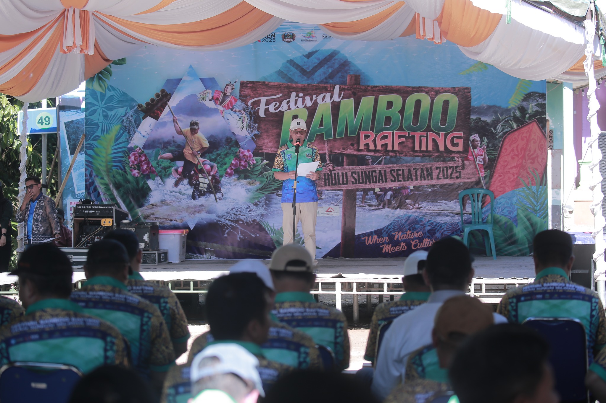 Dalam sambutannya Bupati H. Syafrudin Noor, yang dibacakan oleh Sekda HSS H. Muhammad Noor, menyampaikan bahwa bamboo rafting bukan hanya sekadar atraksi wisata air, tetapi merupakan warisan tradisi masyarakat Meratus yang telah menjadi ikon kebanggaan Hulu Sungai Selatan.