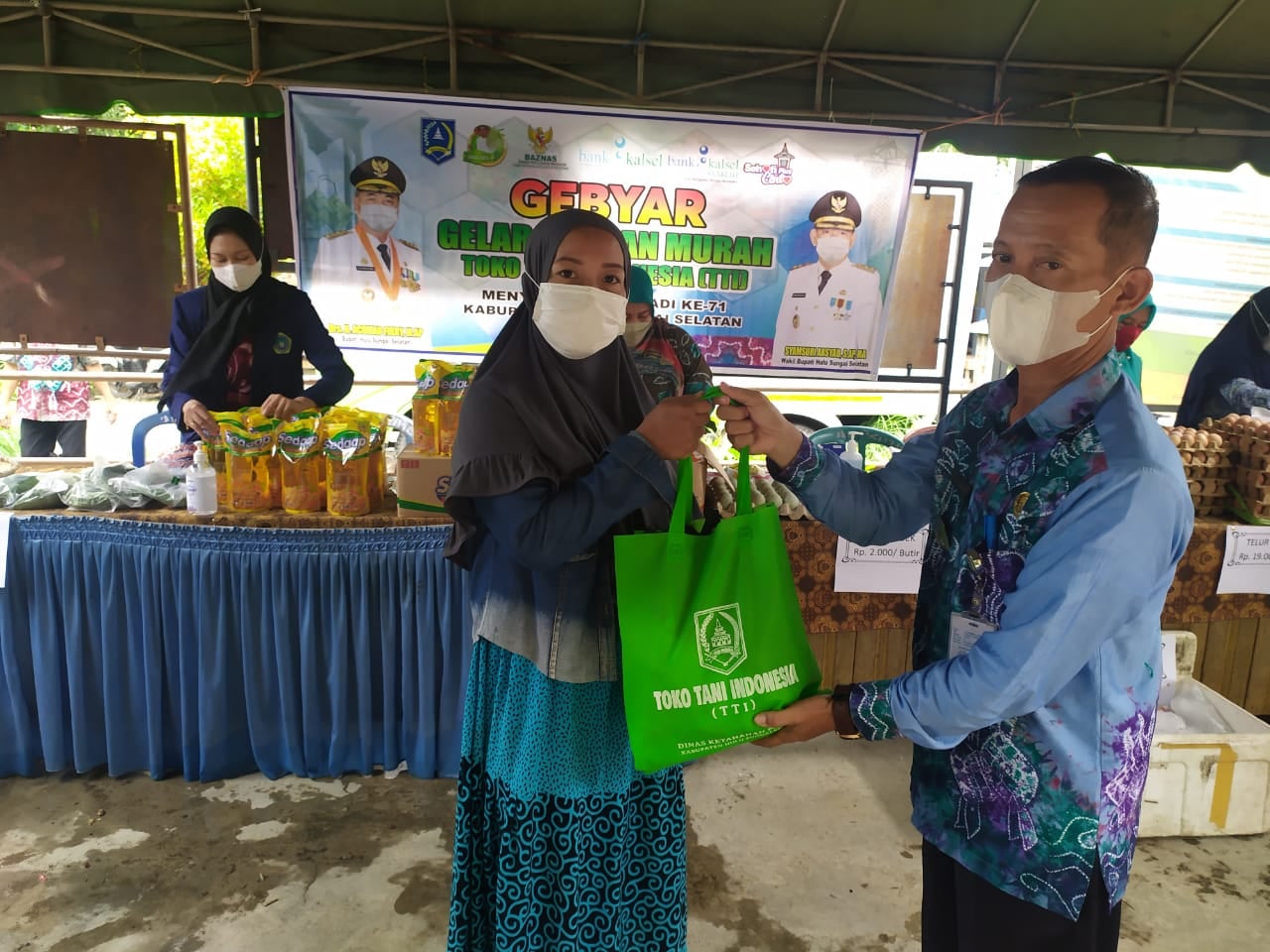 Pada Gebyar Gelar Pangan Murah Toko Tani Indonesia (TTI) ini menyediakan berbagai kebutuhan bahan pangan pokok seperti gula pasir, telur itik, telor ayam, bawang merah, bawang putih, minyak, daging beku (Kerbau), ayam potong, sayuran (dari kelompok Wanita Tani Pekarang Pangan Lestari binaan dari Dinas Ketahanan Pangan Kab. HSS) dan bahan pangan lainnya.