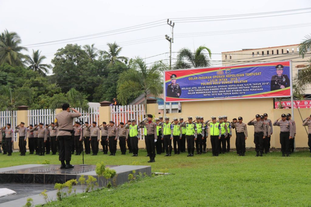 Dalam amanatnya Kapolres HSS AKBP Dedy Eka Jaya, SIK., MH selaku Pembina Upacara mengatakan Apel Gelar Pasukan yang diselenggarakan secara serentak di seluruh jajaran ini merupakan momentum penting untuk meninjau kesiapsiagaan personel, melakukan pengecekan sarana dan prasarana pengamanan, serta guna memperkuat soliditas para pemangku kepentingan yang dilibatkan dalam pengamanan Hari Raya Natal 2018 dan Tahun Baru 2019.