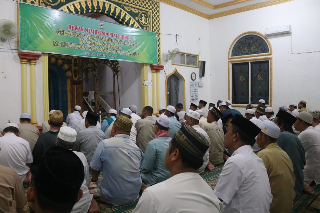 Dewan Masjid Indonesia (DMI) Kabupaten HSS bersama Pemerintah Kabupaten HSS kembali menggelar kegiatan Gerakan sholat Subuh berjamaah, pada kesempatan ini kegiatan dilaksanakan di Masjid Syuhada Desa Malutu Kecamatan Padang Batung, Selasa, (24/10/2023).