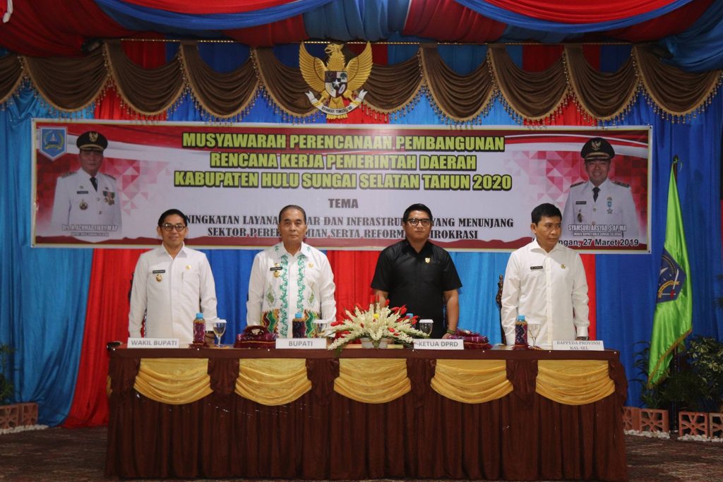 Bupati HSS Drs. H. Achmad Fikry M.Ap didampingi Wakil Bupati HSS Syamsuri Arsyad S.Ap MA membuka secara resmi Musyawarah Perencanaan Pembangunan (Musrenbang) RKPD Kab. HSS tahun 2020 di Pendopo, Rabu (27/3).
