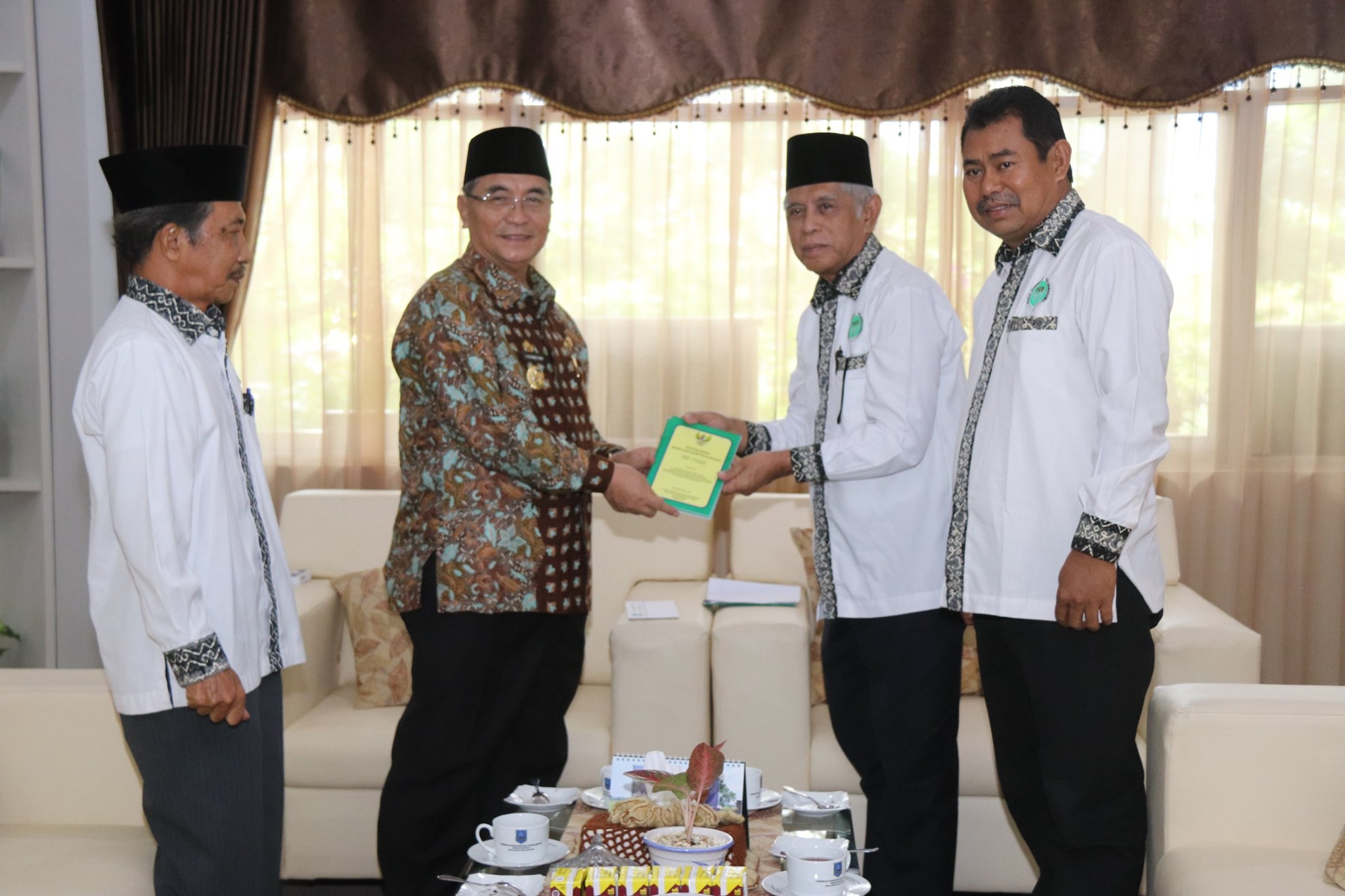 Bertempat di ruang kerjanya, Bupati Hulu Sungai Selatan (HSS), Drs. H. Achmad Fikry, M.AP siang ini (Selasa, 25/06/2019) menerima kunjungan Pengurus Forum Kerukunan Umat Beragama (FKUB) Daerah Provinsi Kalsel. Kedatangan Tim yang dipimpin oleh Drs, Bahran Noor Haira, M.Ag ini disambut dengan hangat oleh Bupati. Kunjungan silaturrahmi ini adalah program kerja FKUB Provinsi Kalsel sehubungan dengan akan diadakannya Sosialisasi Bertema Menjaga Kerukunan Umat Beragama yang akan dilaksanakan di seluruh kabupaten dan kota.