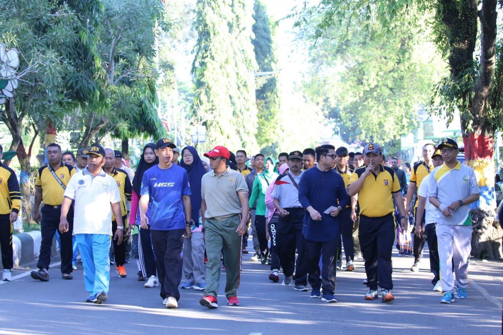Dalam rangka menyambut dan memperingati HUT Bhayangkara yang ke – 73 Tahun 2019, Polres Hulu Sungai Selatan (HSS) menggelar Olahraga Bersama bertempat di Lapangan Lambung Mangkurat Kandangan, Minggu (23/6/2019). Olahraga bersama ini ditandai dengan pelepasan jalan sehat dengan start dan finisnya di depan Gedung MTQ Kandangan.
