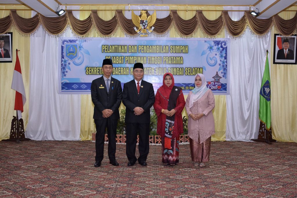 Pelantikan tersebut berdasarkan Surat Keputusan Bupati HSS Nomor:821.22/205-PKA/BKD, Diklat tanggal 20 Mei 2019 tentang Pengangkatan dan Pemindahan Pegawai Negeri Sipil Dalam Jabatan Pimpinan Tinggi Pratama Sekretaris Daerah Kabupaten HSS.